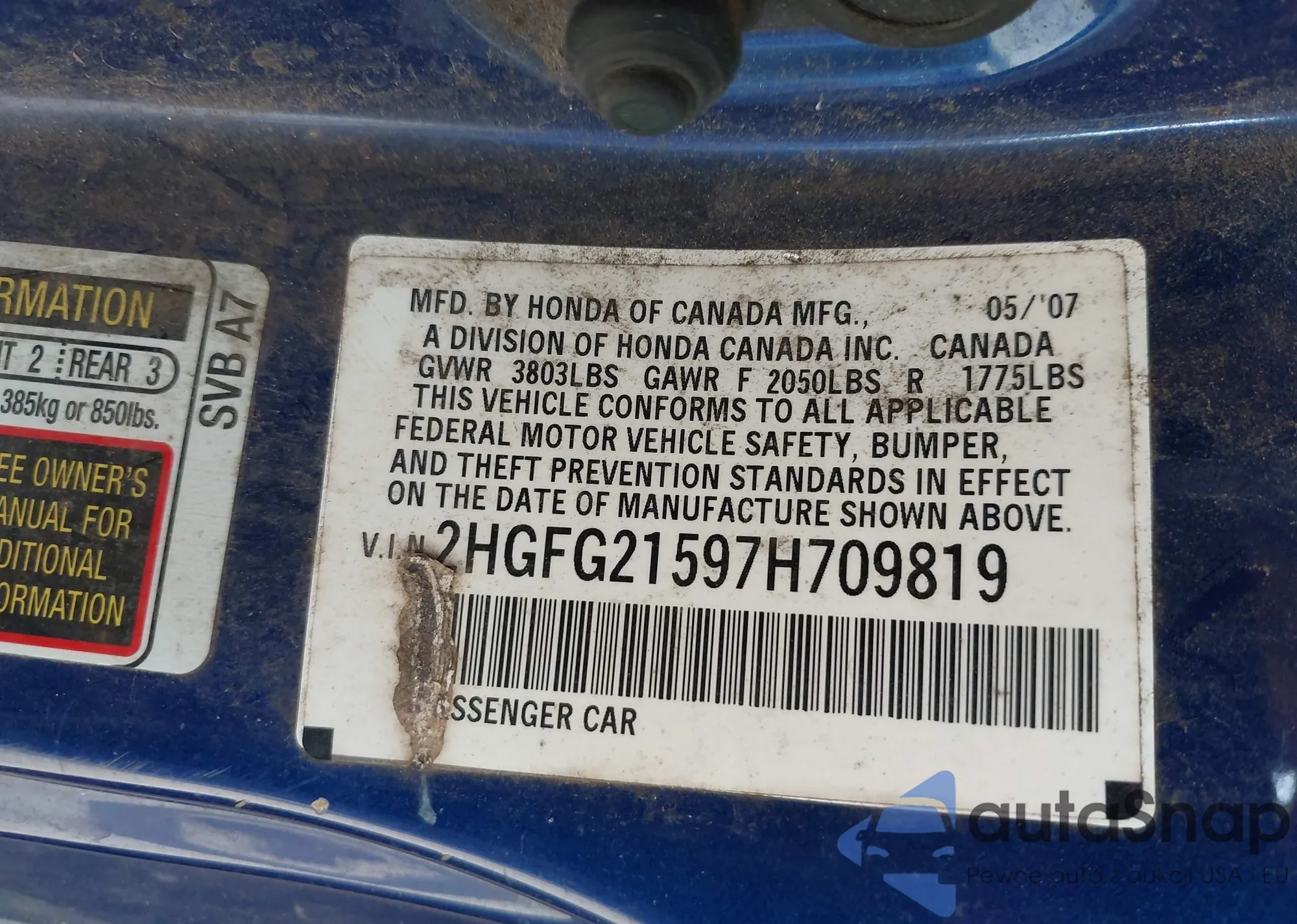 • VIN: 2HGFG21597H709819