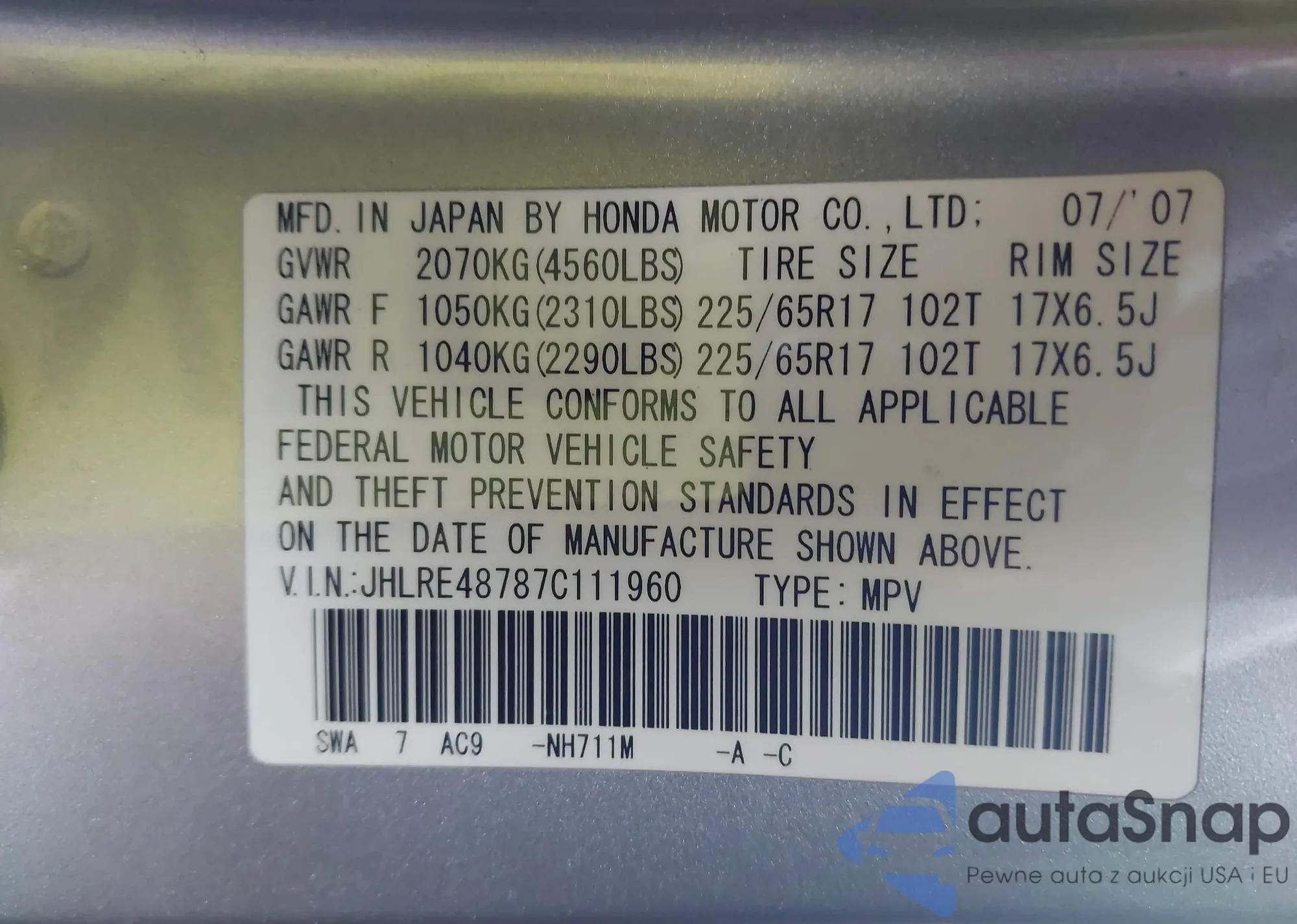 VIN: JHLRE48787C111960