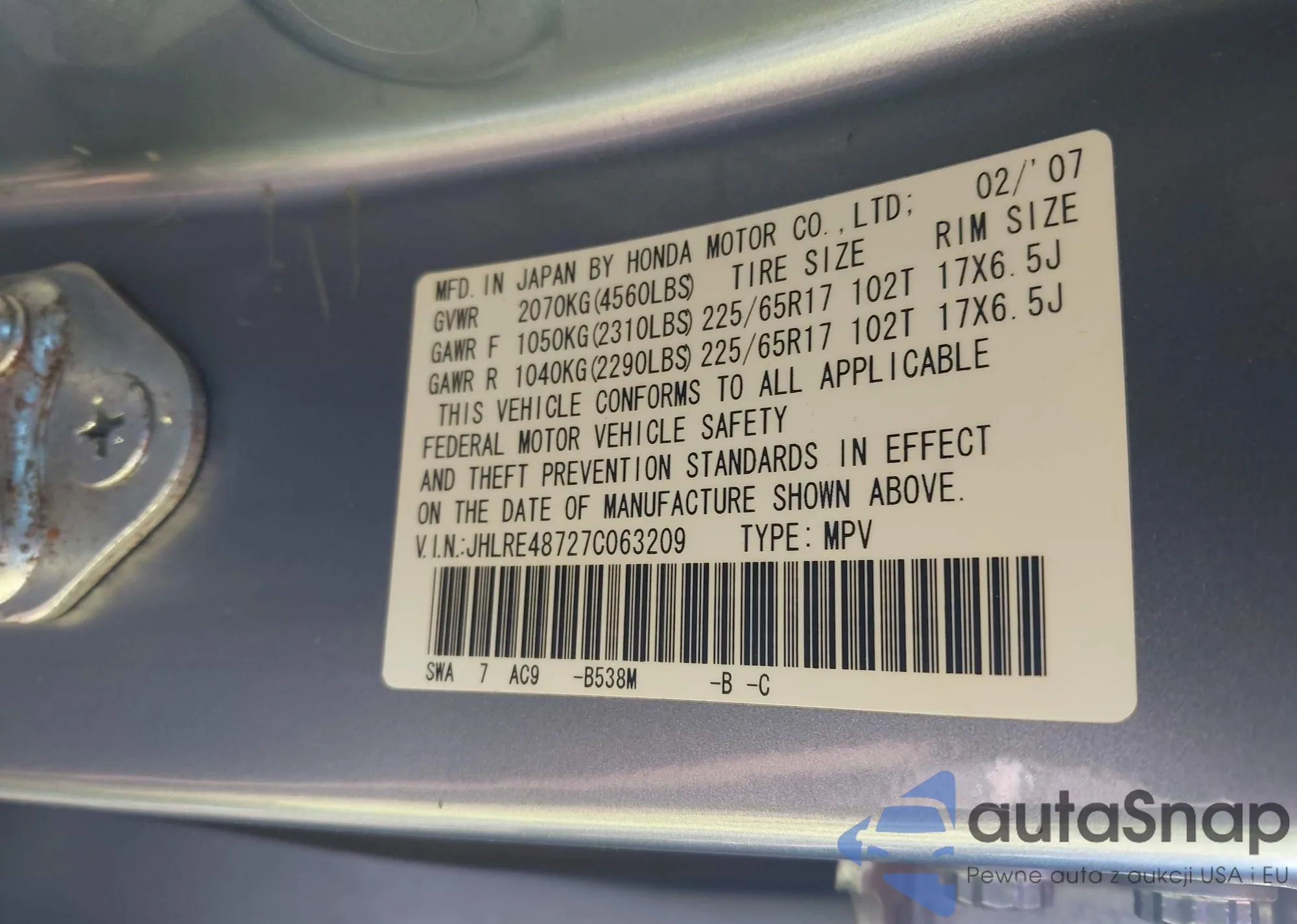 VIN: JHLRE48727C063209