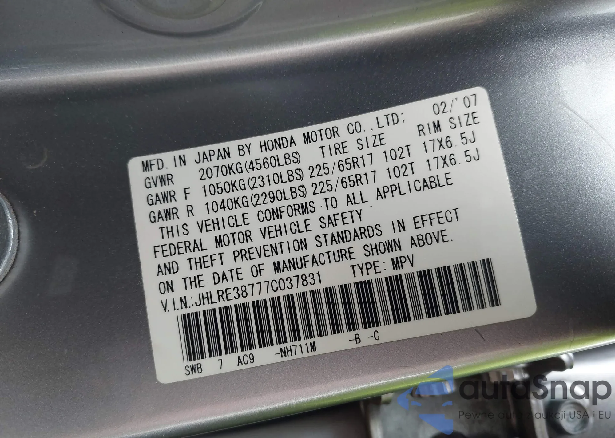 VIN: JHLRE38777C037831