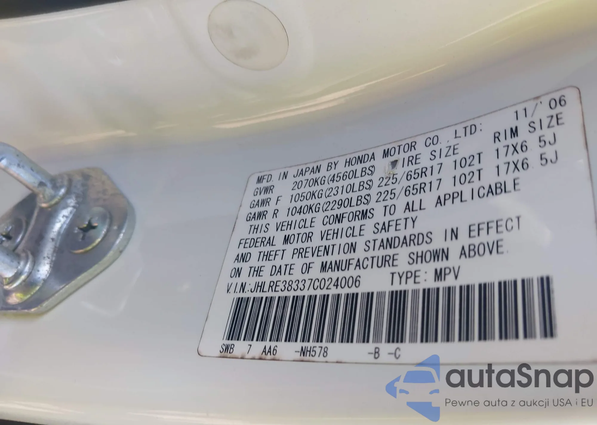 VIN: JHLRE38337C024006