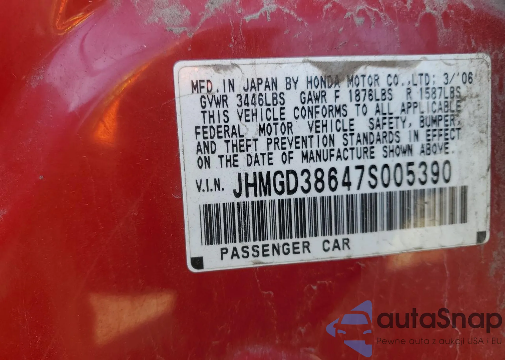VIN: JHMGD38647S005390