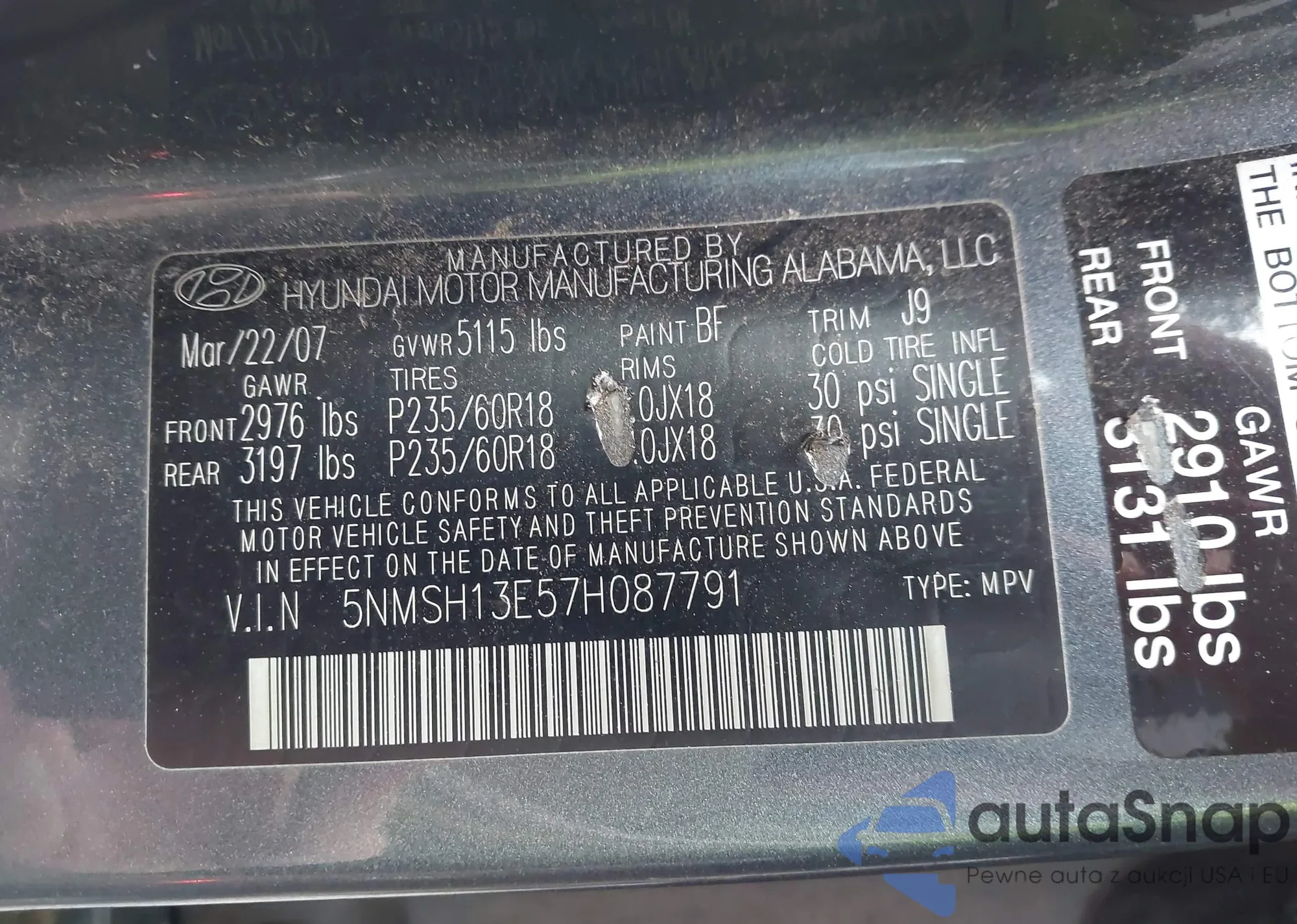 VIN: 5NMSH13E57H087791