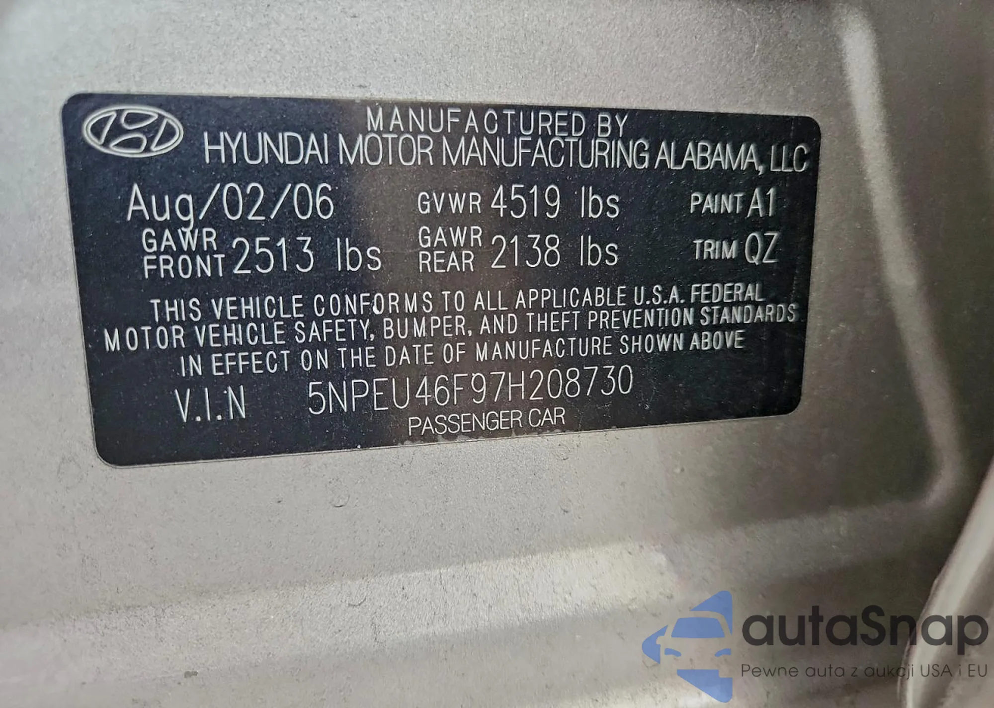 VIN: 5NPEU46F97H208730