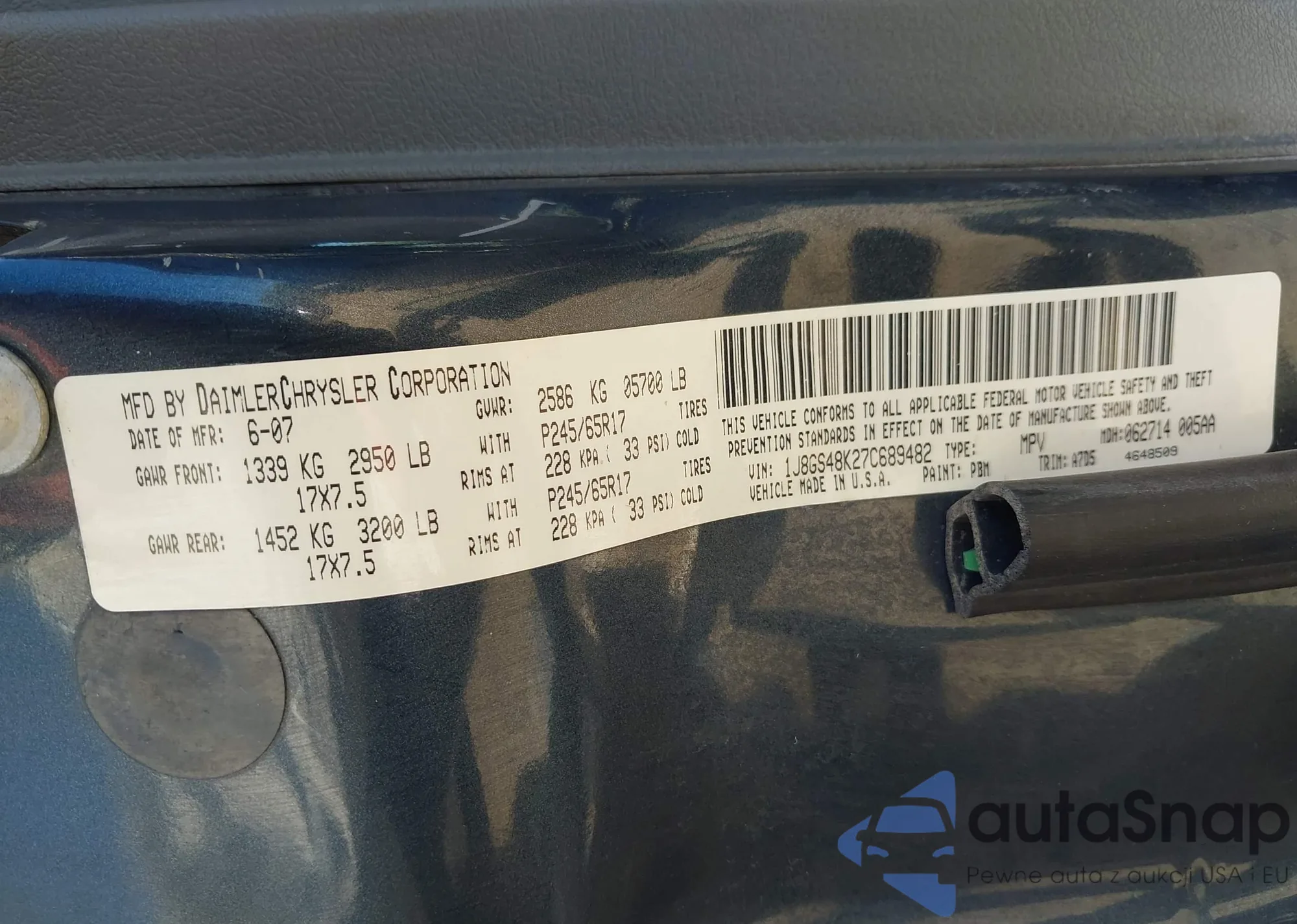 VIN: 1J8GS48K27C689482