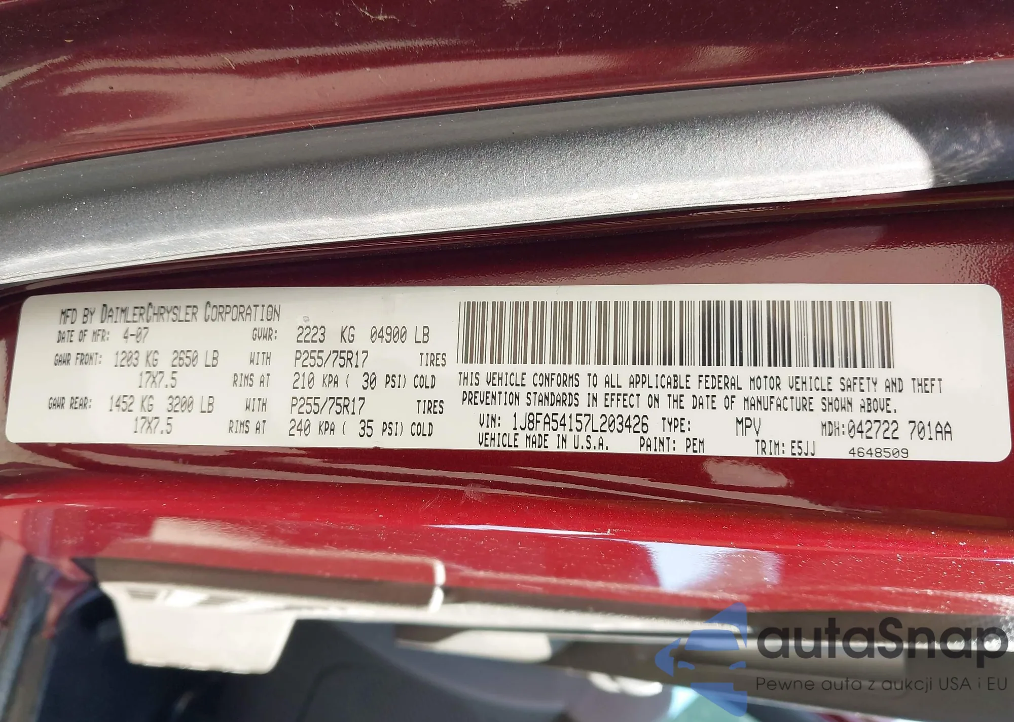 VIN: 1J8FA54157L203426