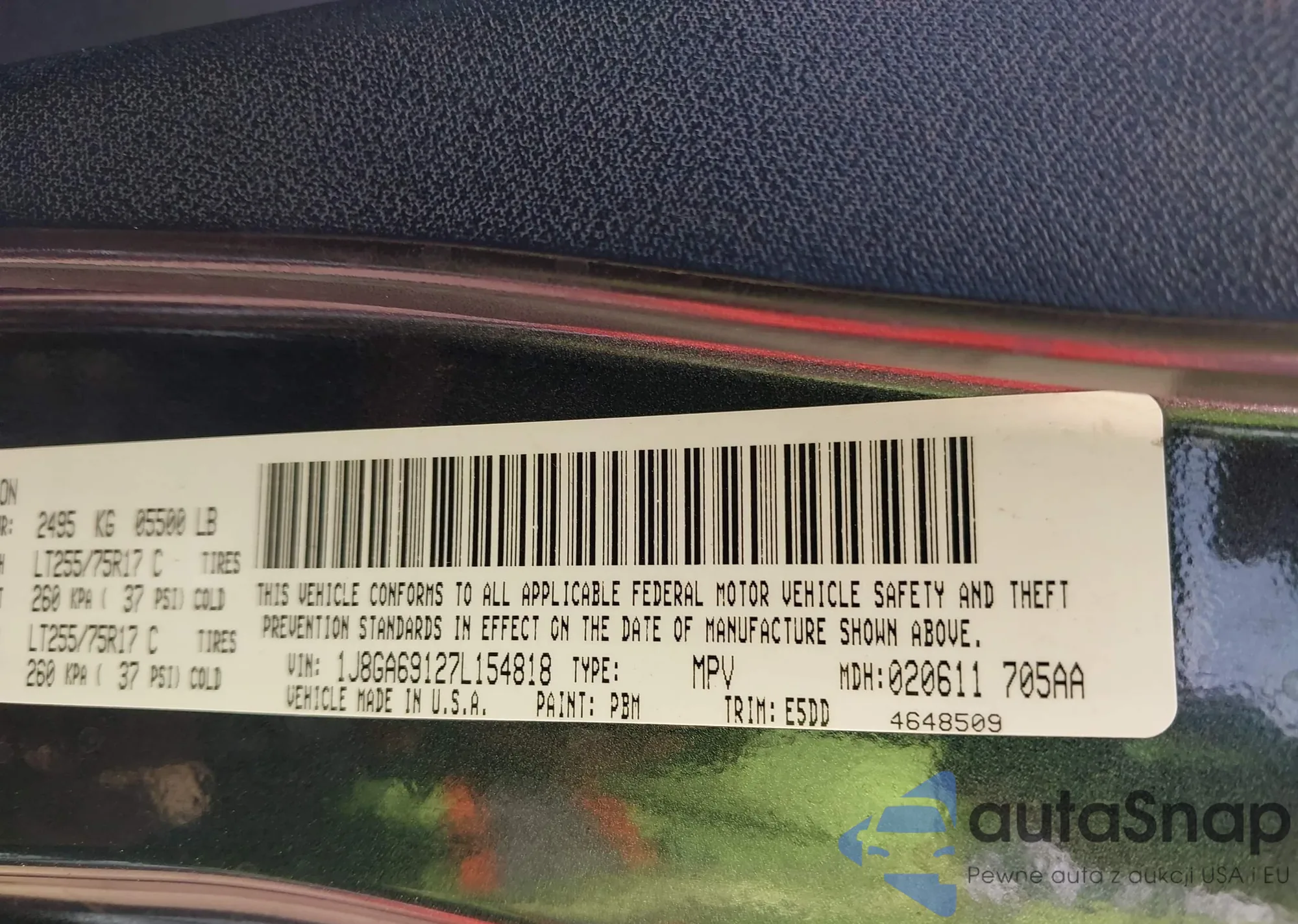 • VIN: 1J8GA69127L154818