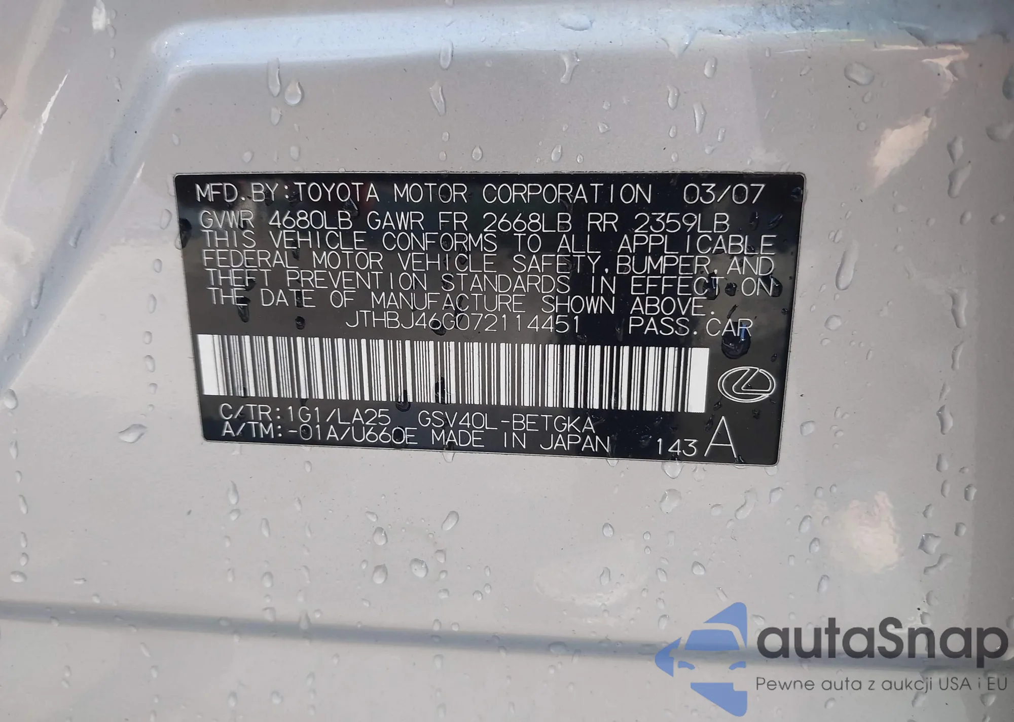 Make: 2007 Lexus Es 350