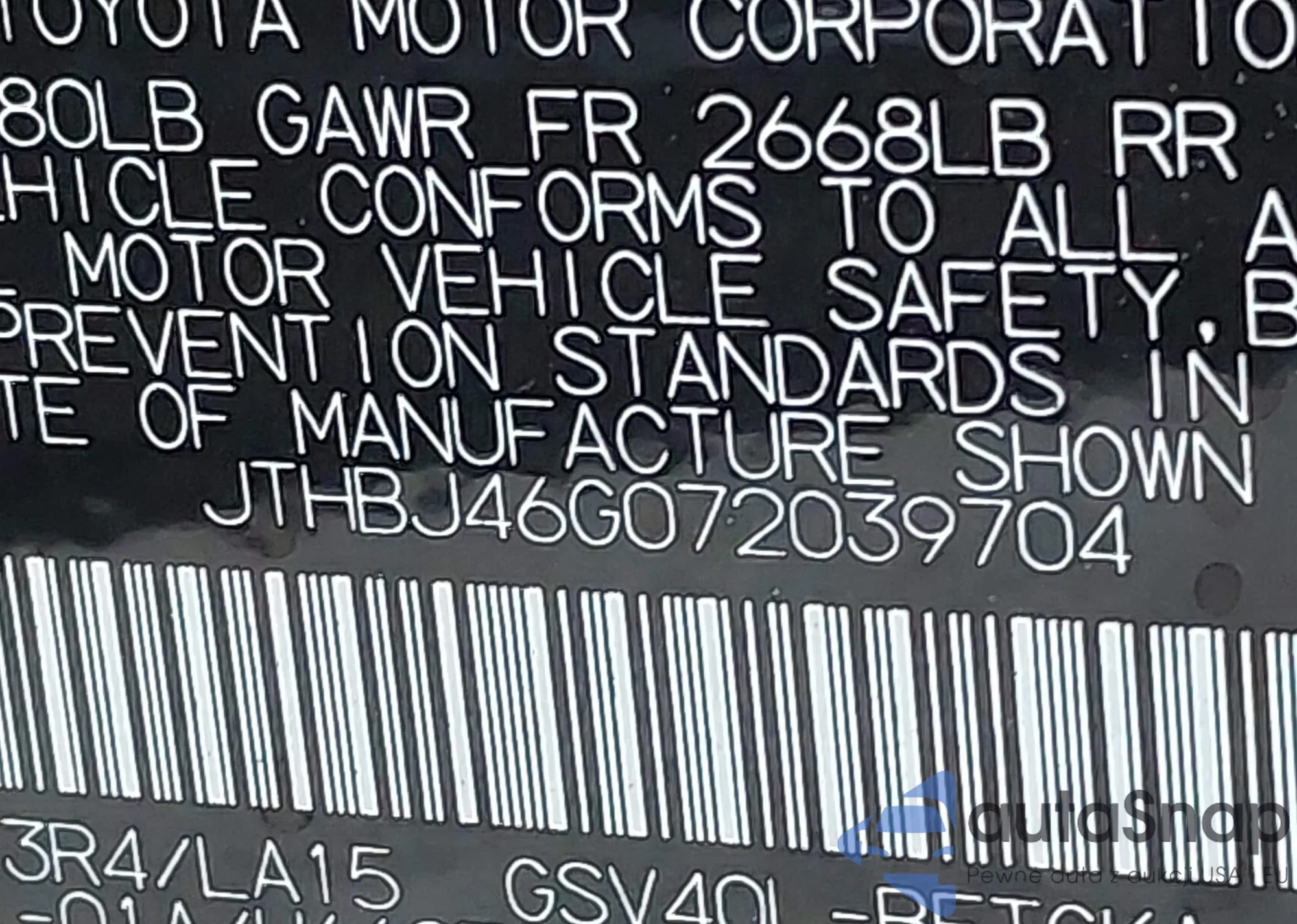 VIN: JTHBJ46G072039704