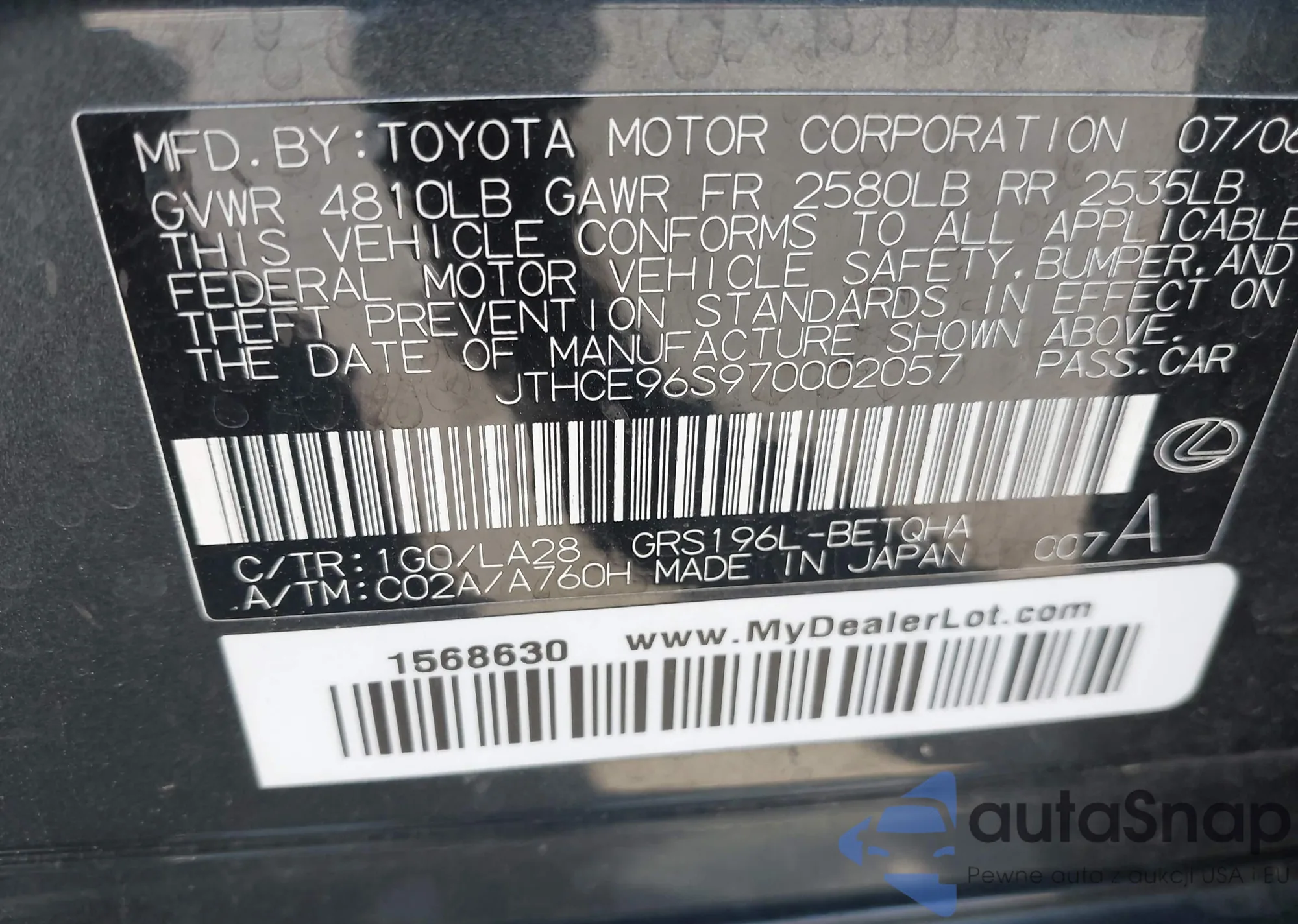VIN: JTHCE96S970002057