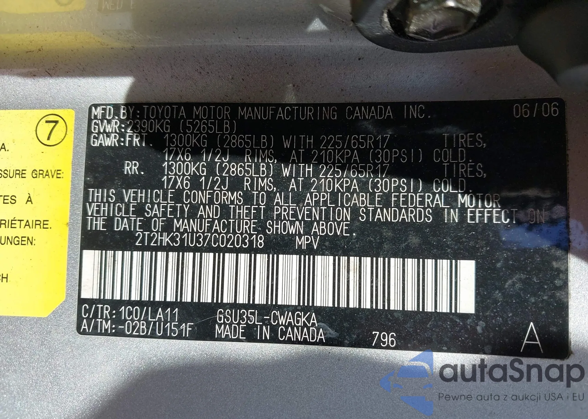 VIN: 2T2HK31U37C020318