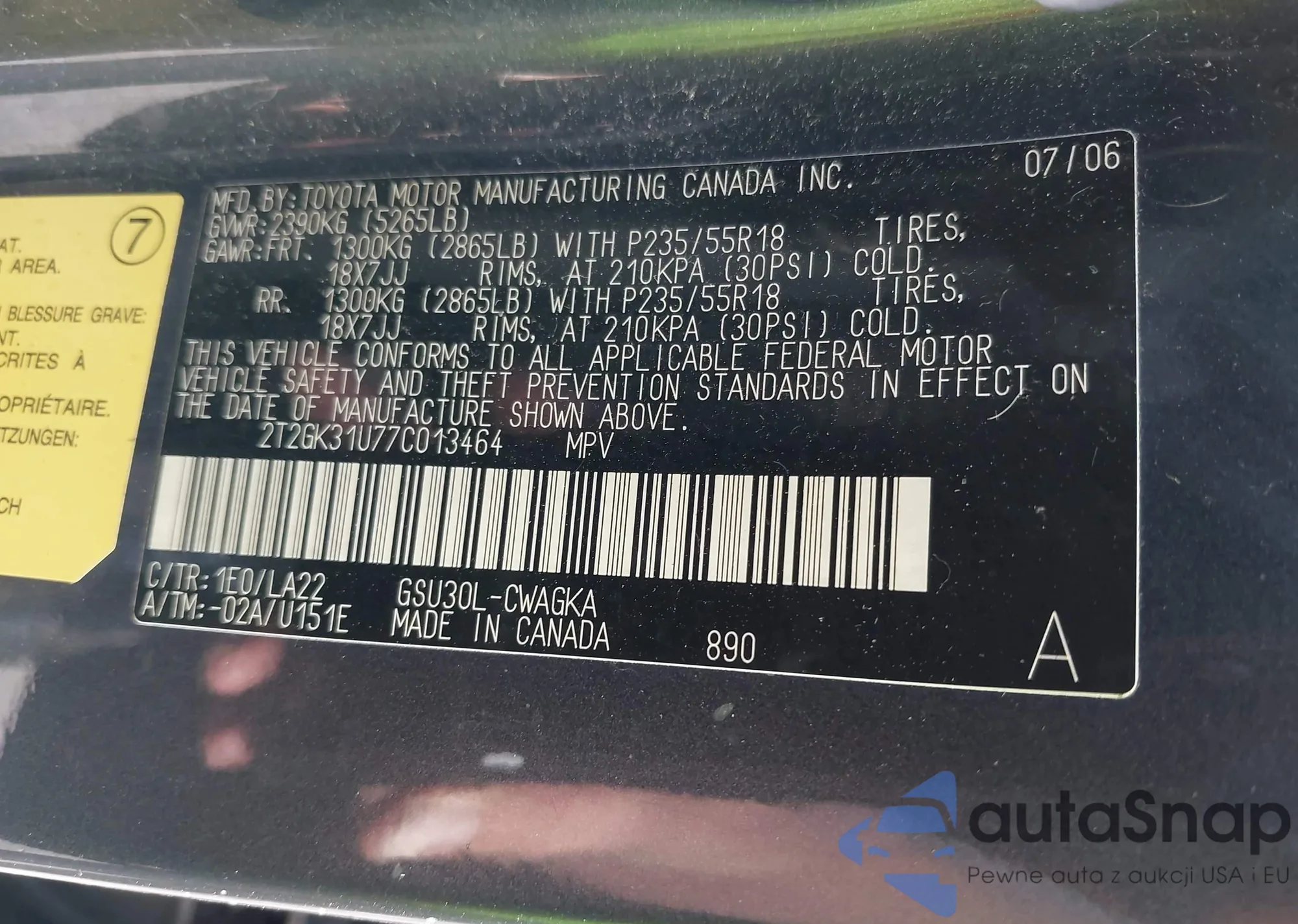 VIN: 2T2GK31U77C013464