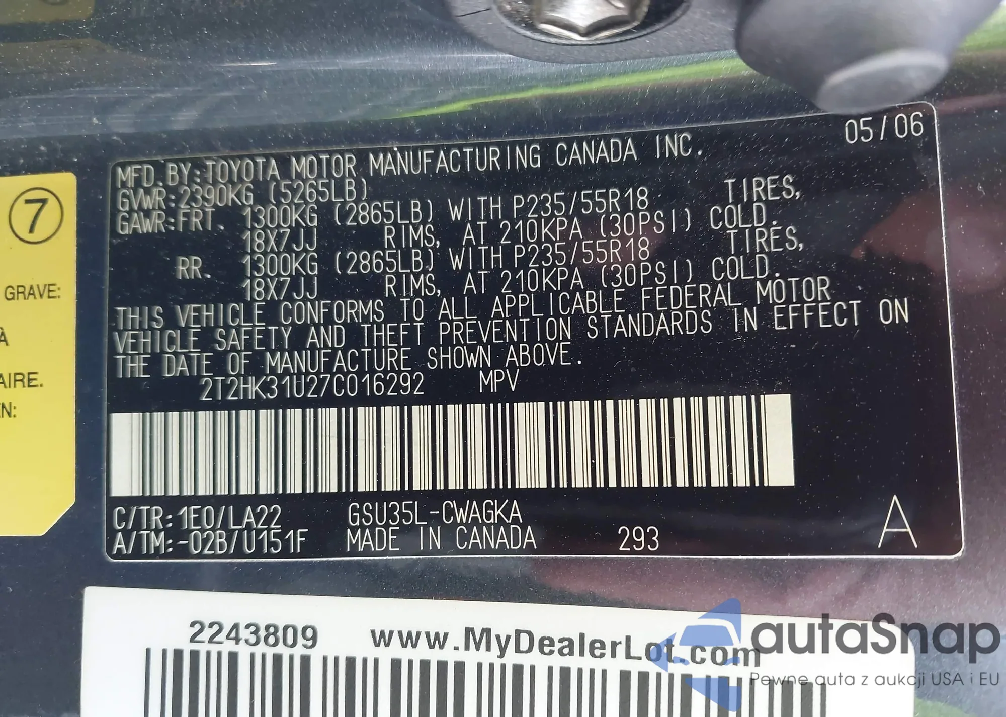 VIN: 2T2HK31U27C016292