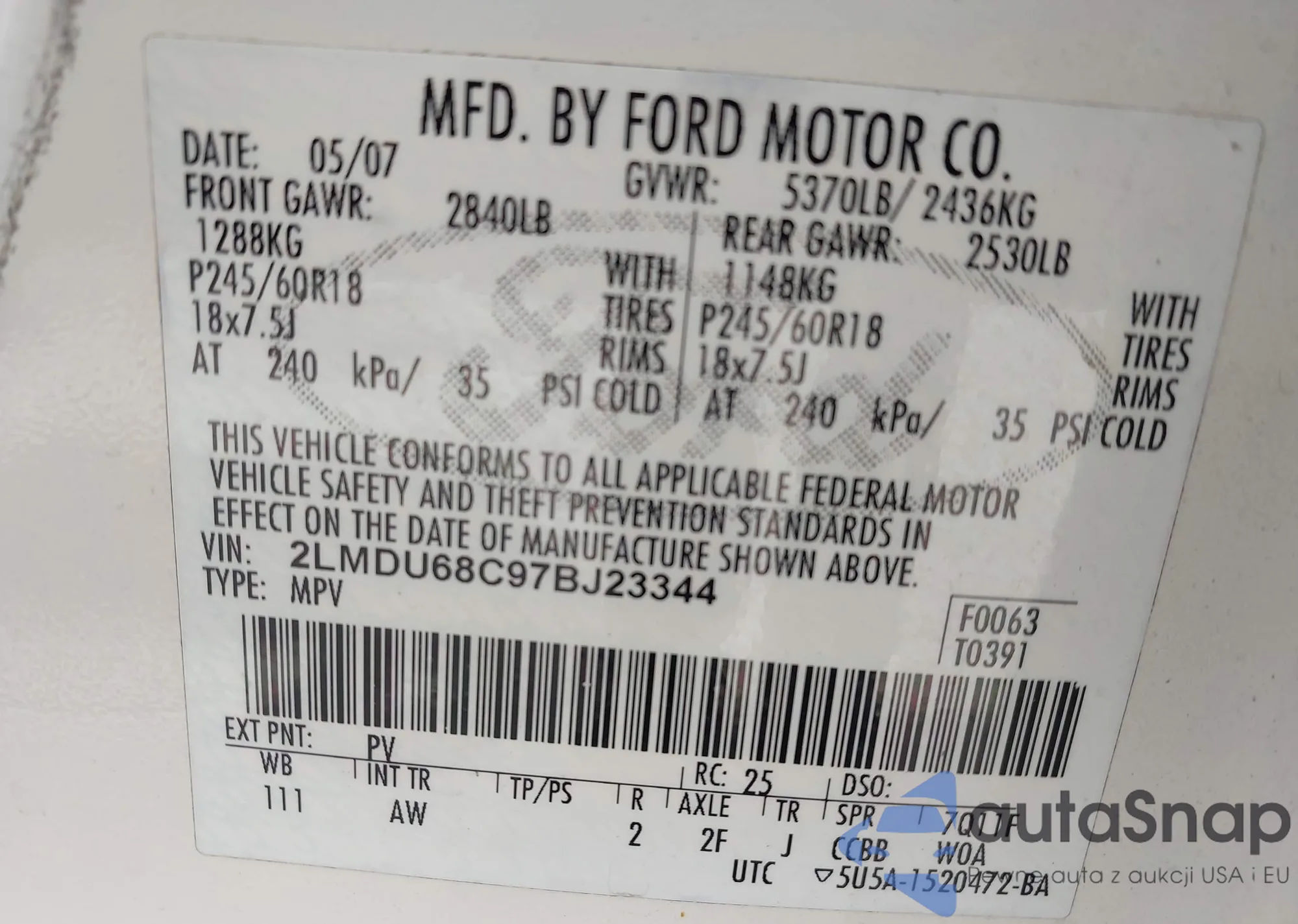 VIN: 2LMDU68C97BJ23344