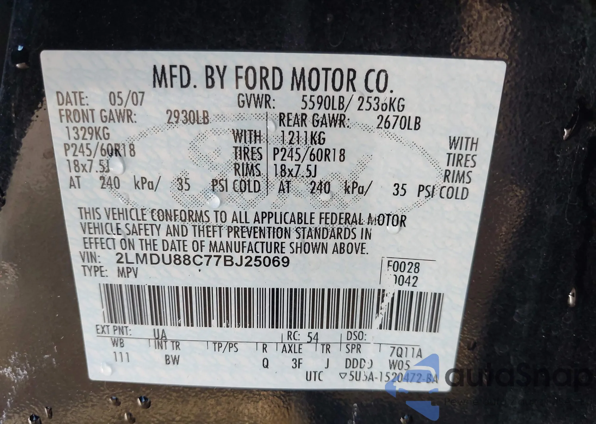 VIN: 2LMDU88C77BJ25069