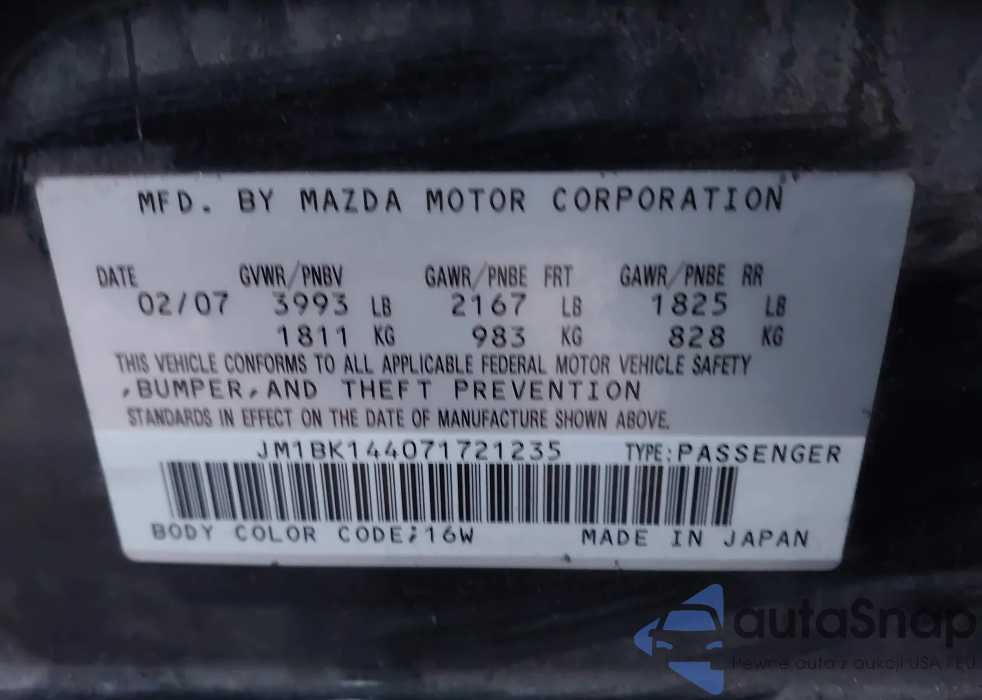VIN: JM1BK144071721235
