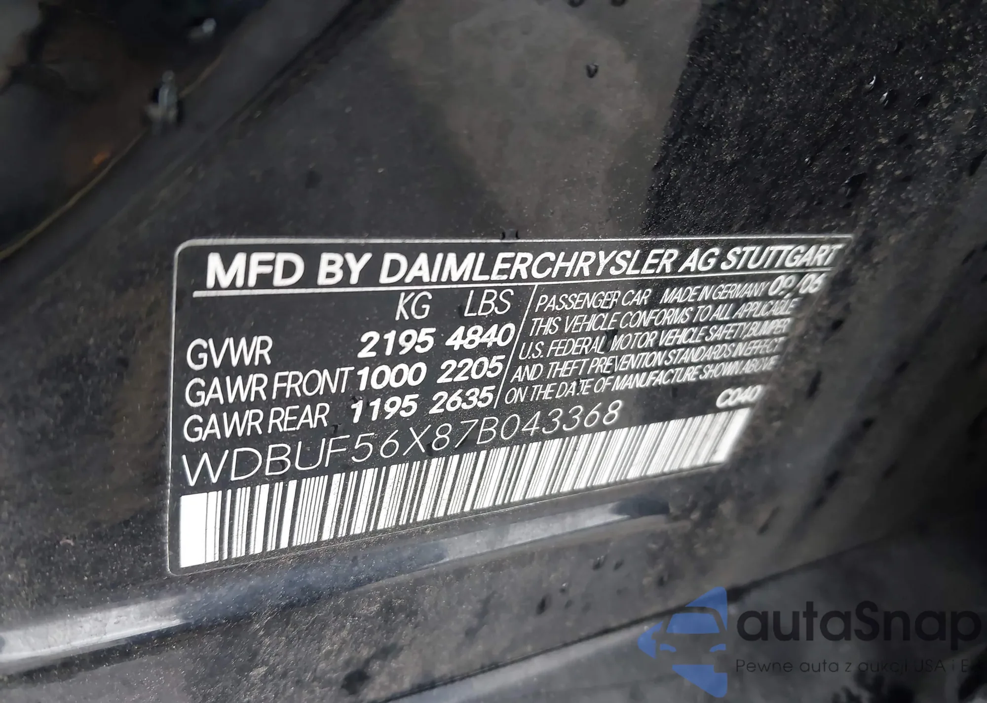 VIN: WDBUF56X87B043368