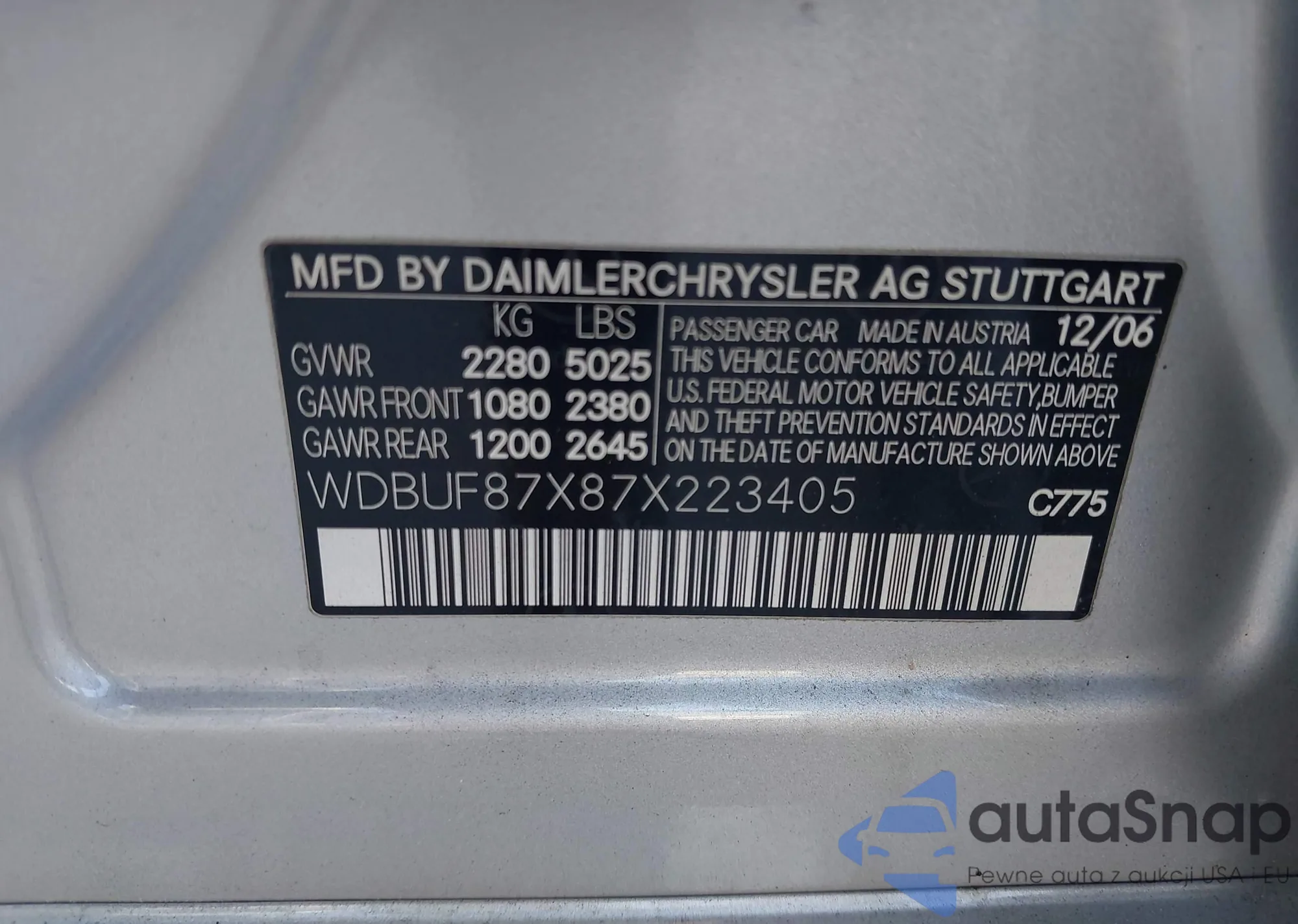 VIN: WDBUF87X87X223405