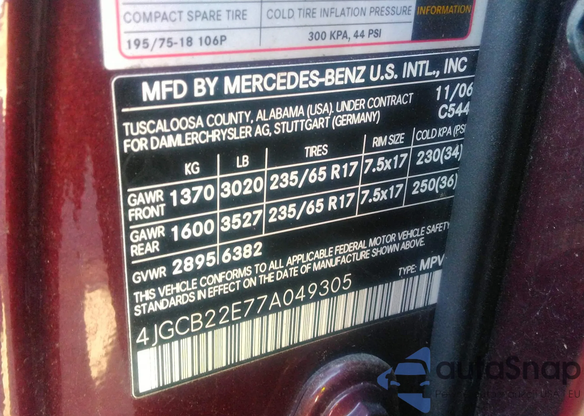 VIN: 4JGCB22E77A049305