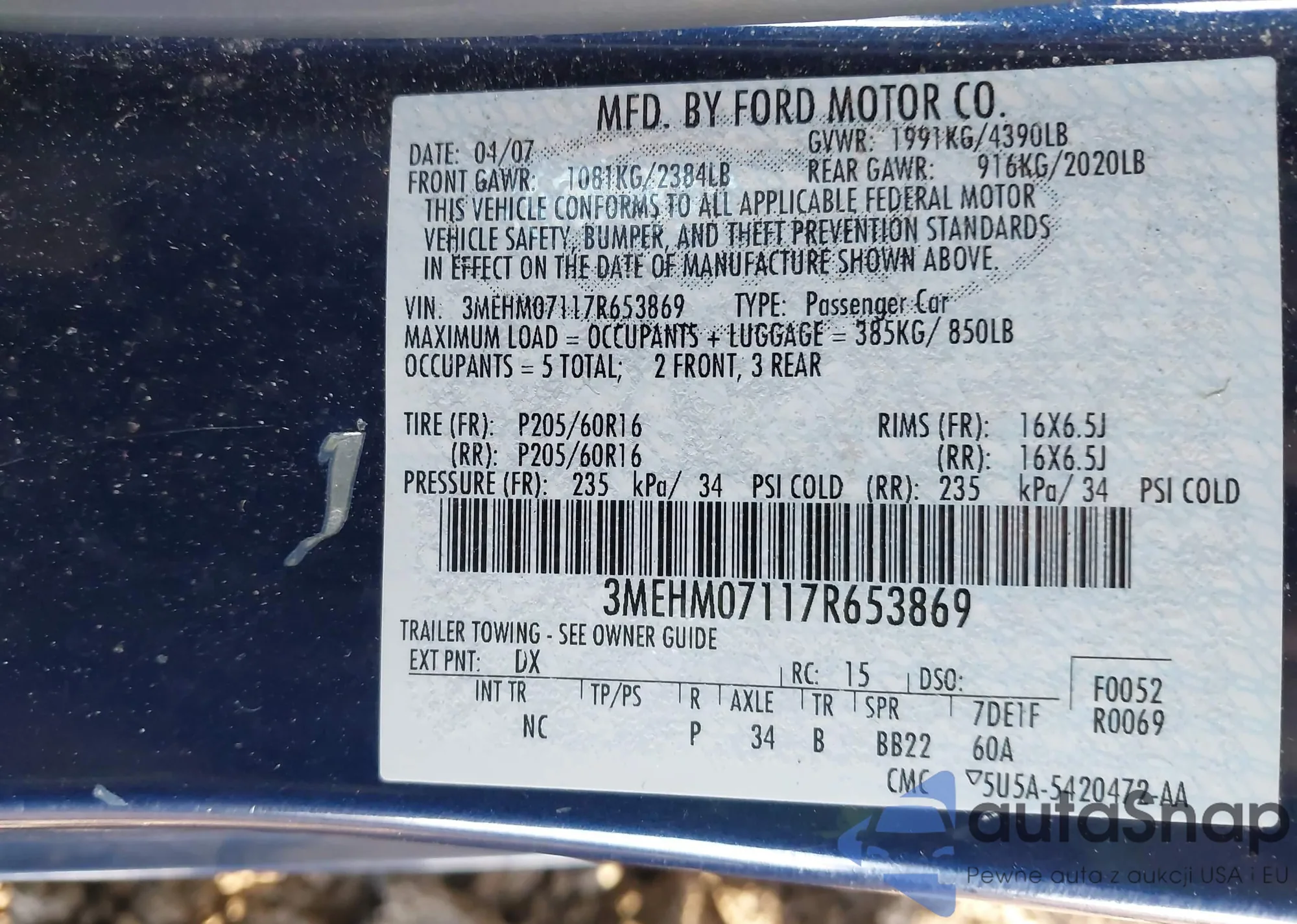 • Year of manufacture: 2007