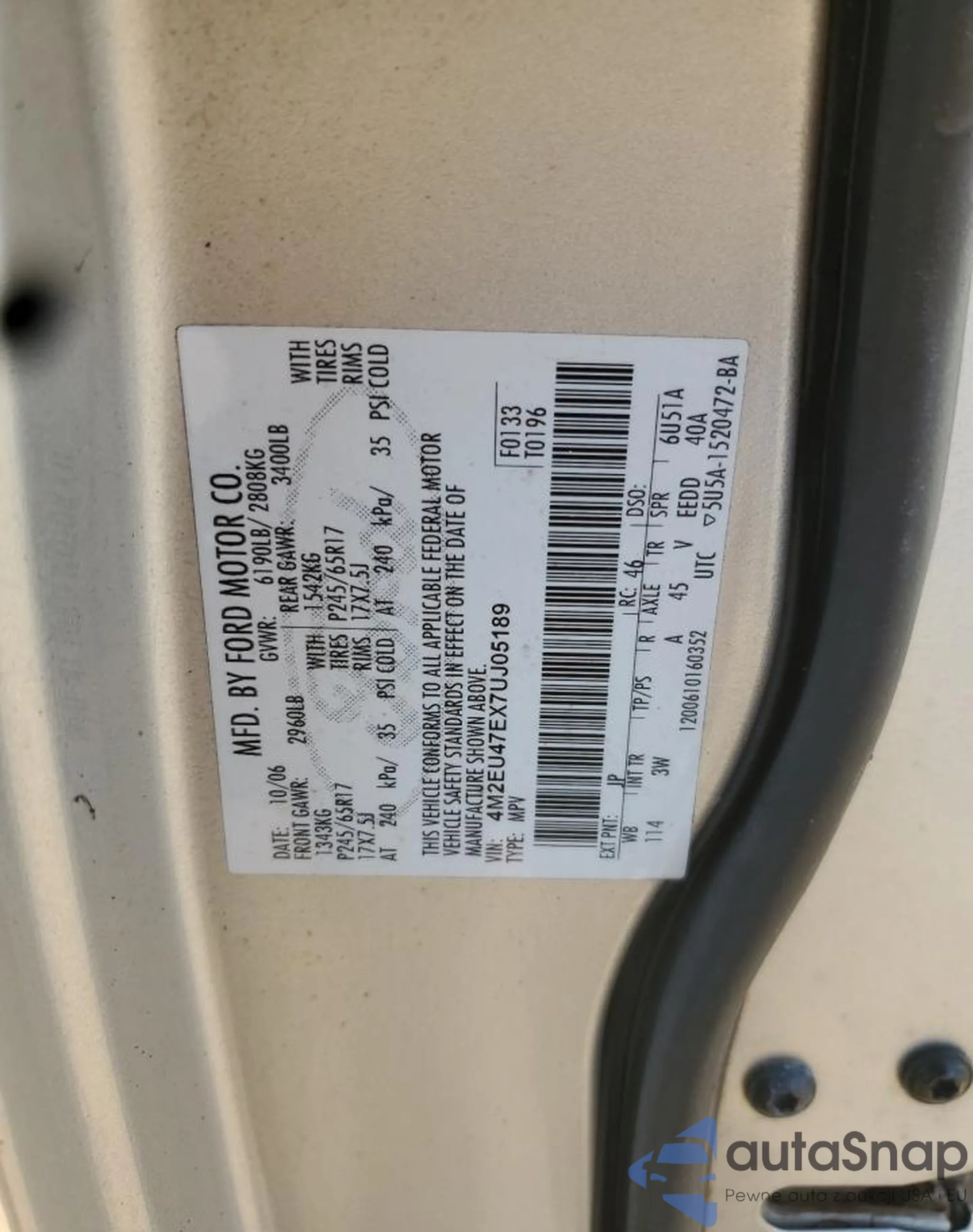 The car Mercury Mountaineer 2007 (VIN 4M2EU47EX7UJ05189) is sold by an unverified seller. We recommend checking the Carfax report and confirming registration possibilities before purchase.