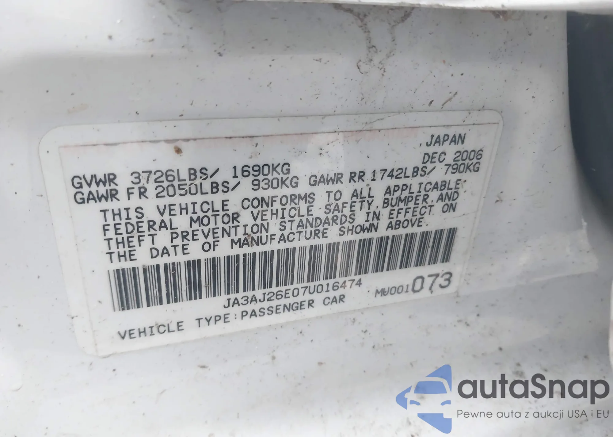 • VIN: JA3AJ26E07U016474