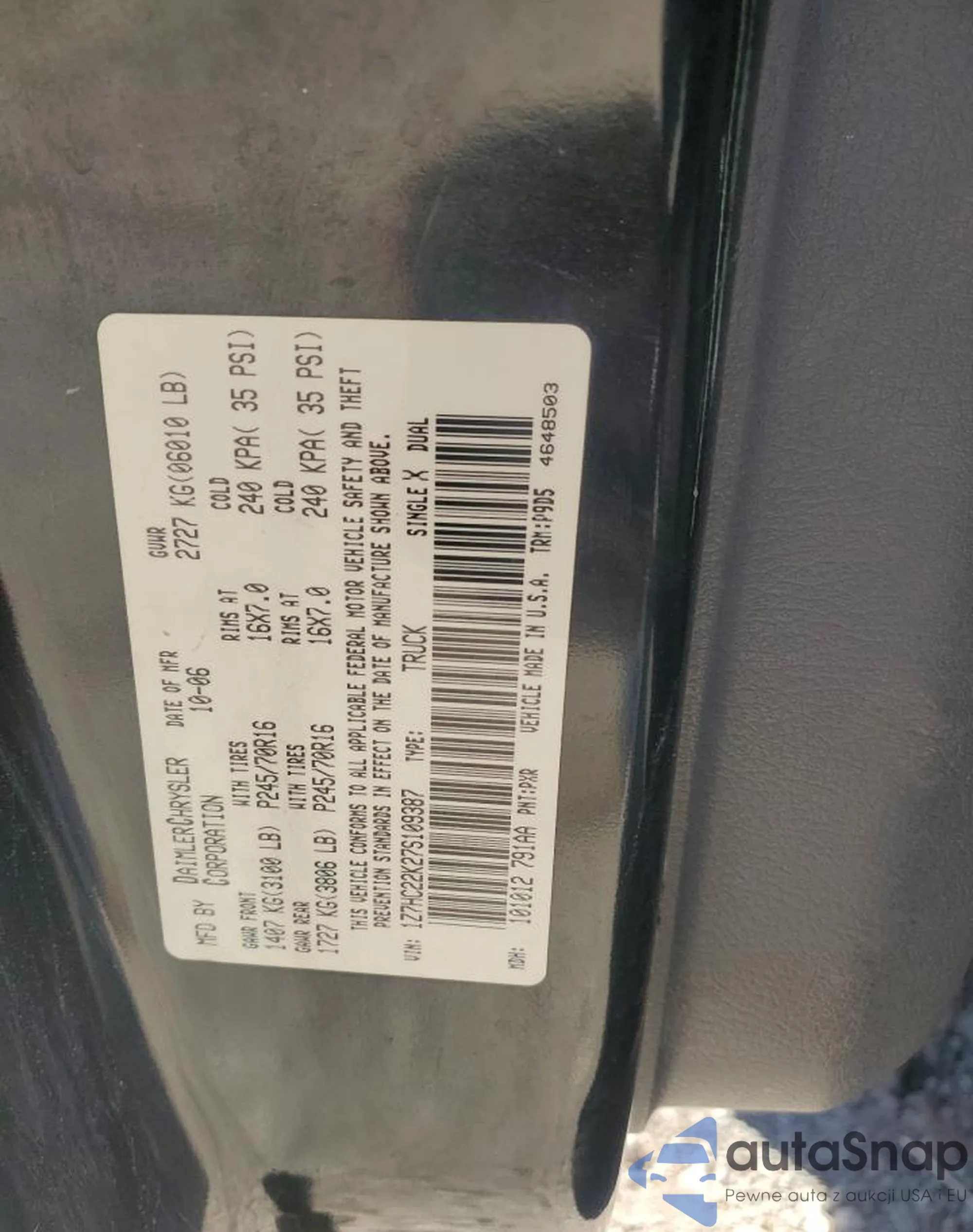 The car Mitsubishi Raider 2007 (VIN 1Z7HC22K27S109387) is sold by an unverified seller. We recommend checking the Carfax report and confirming registration possibilities before purchase.