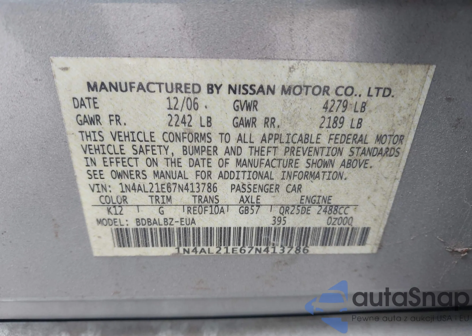 VIN: 1N4AL21E67N413786