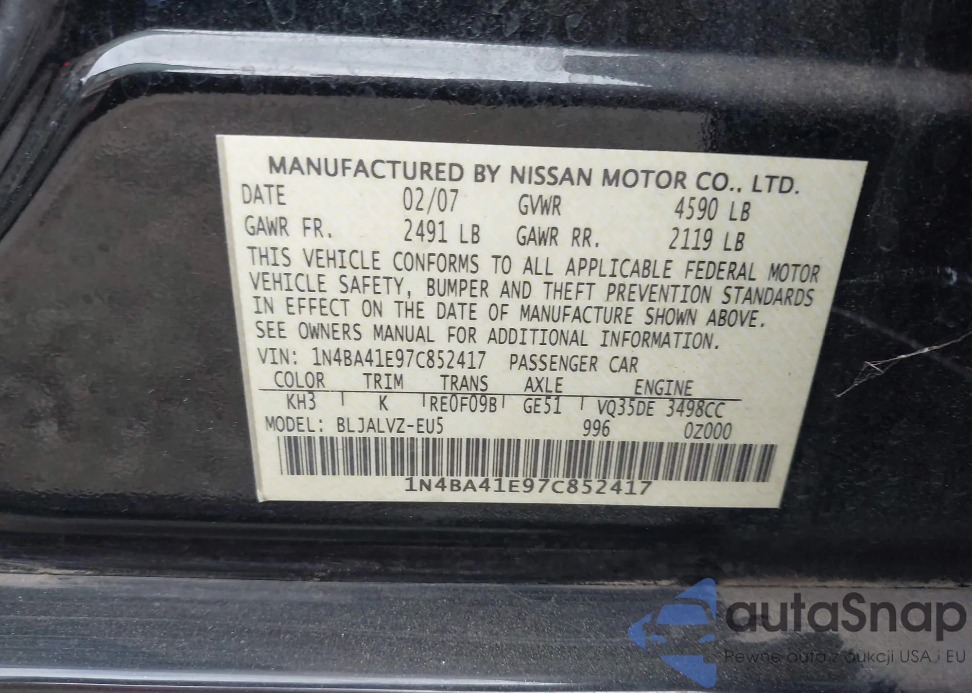 VIN: 1N4BA41E97C852417