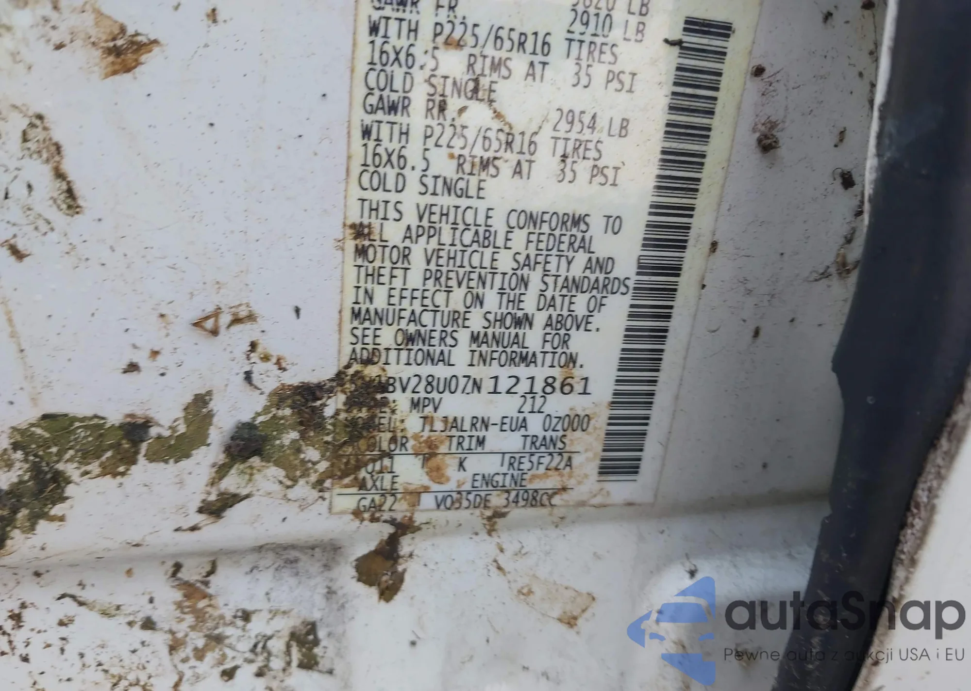 • VIN: 5N1BV28U07N121861