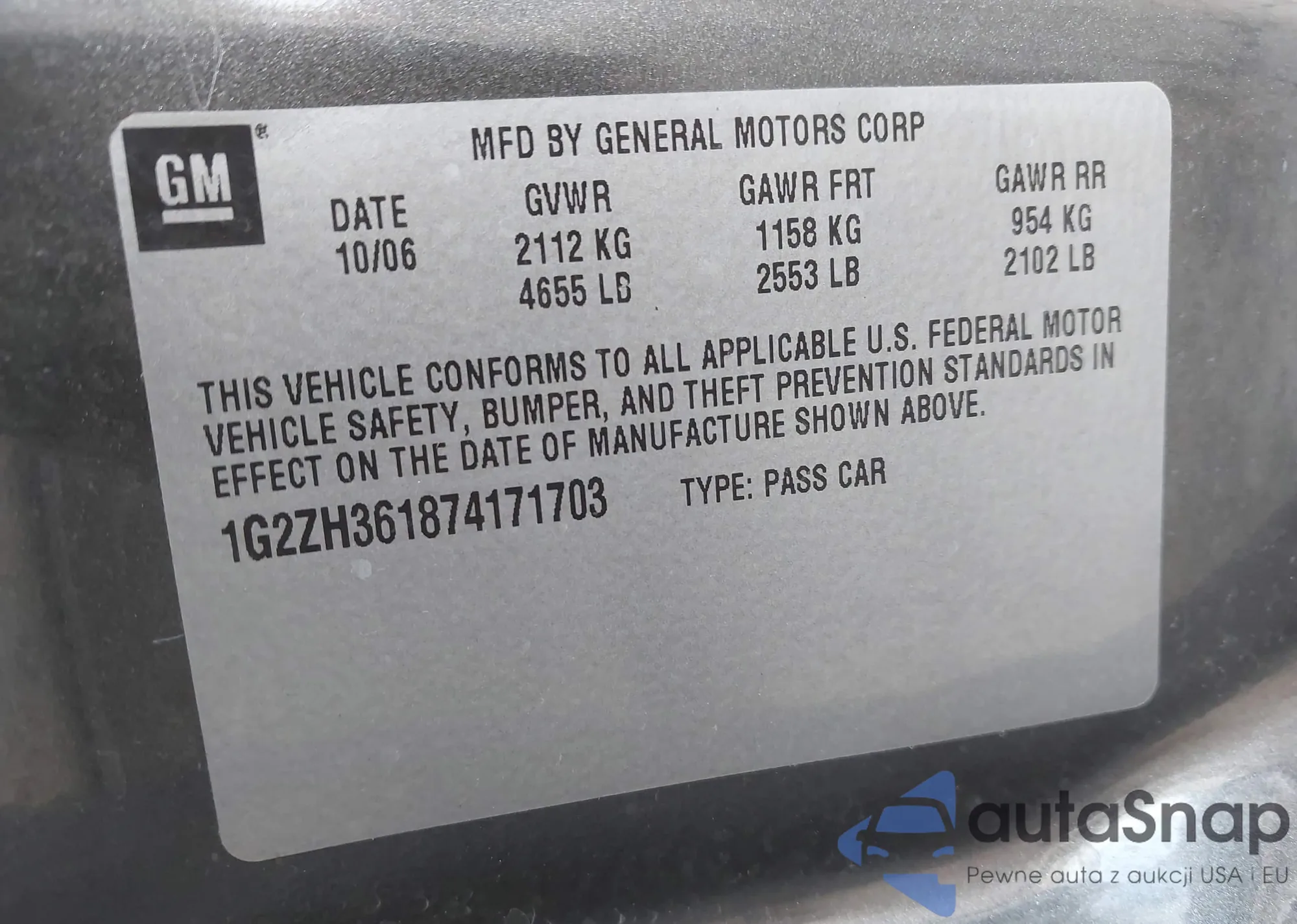 VIN: 1G2ZH361874171703