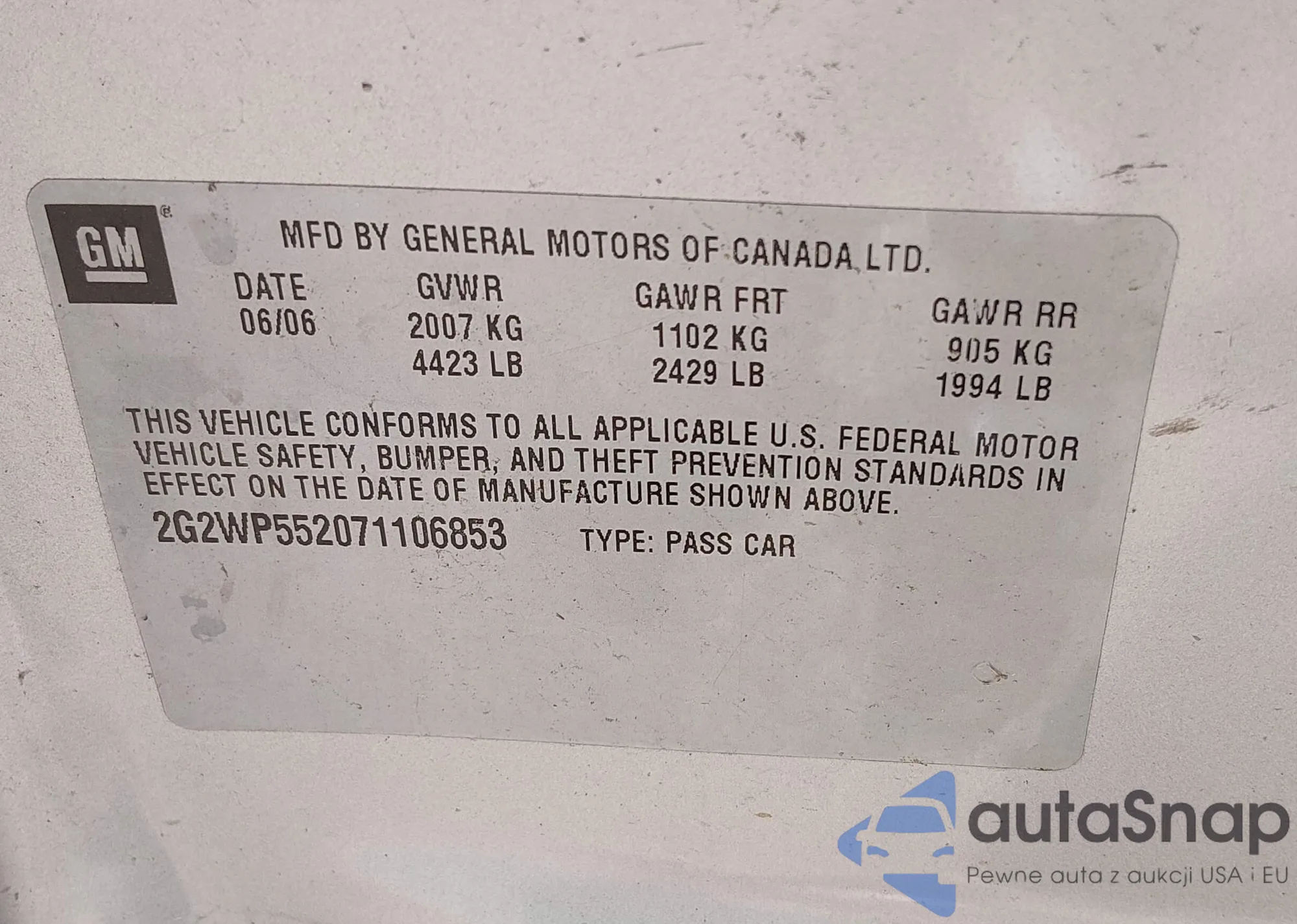 • VIN: 2G2WP552071106853