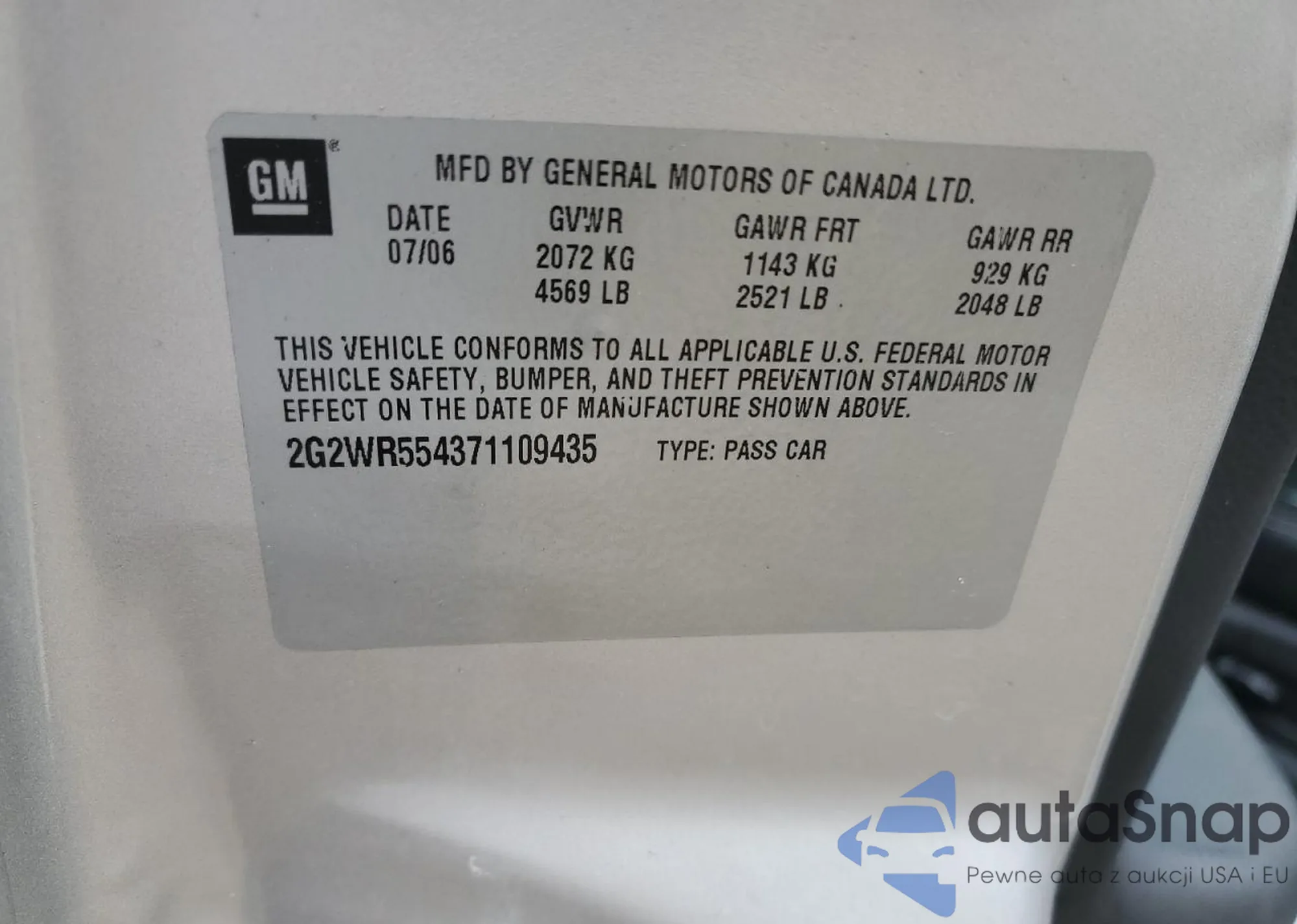 VIN: 2G2WR554371109435