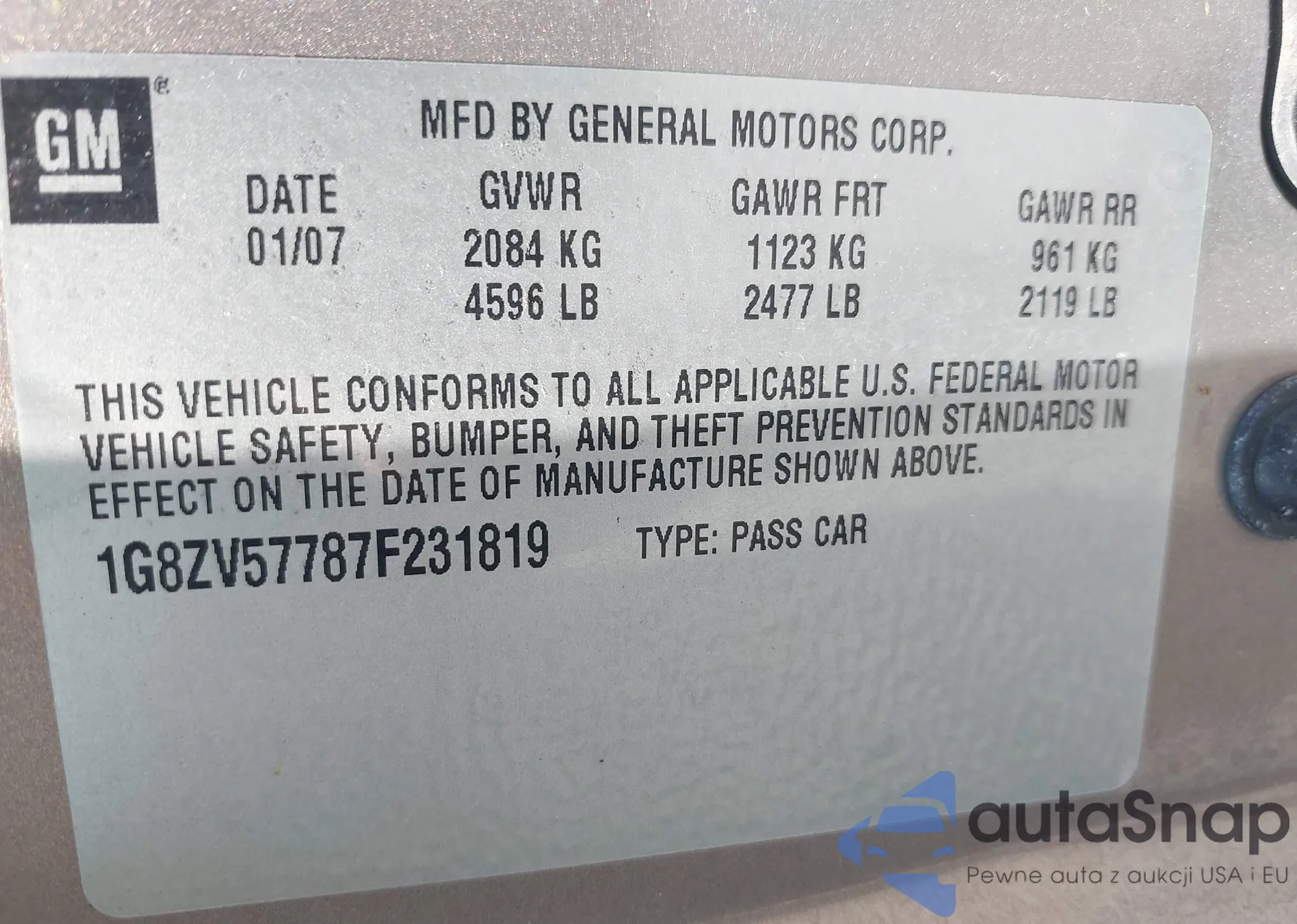 VIN: 1G8ZV57787F231819