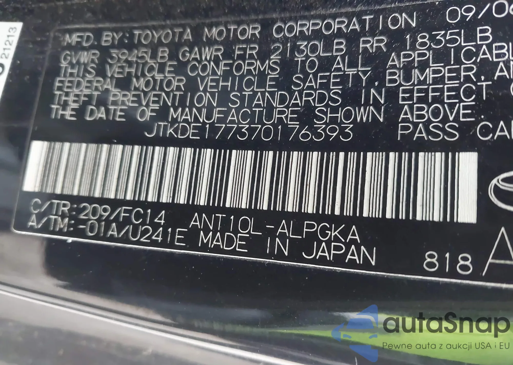 VIN: JTKDE177370176393