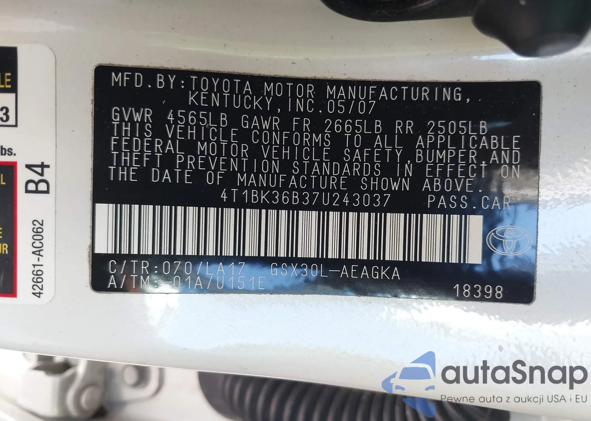 VIN: 4T1BK36B37U243037