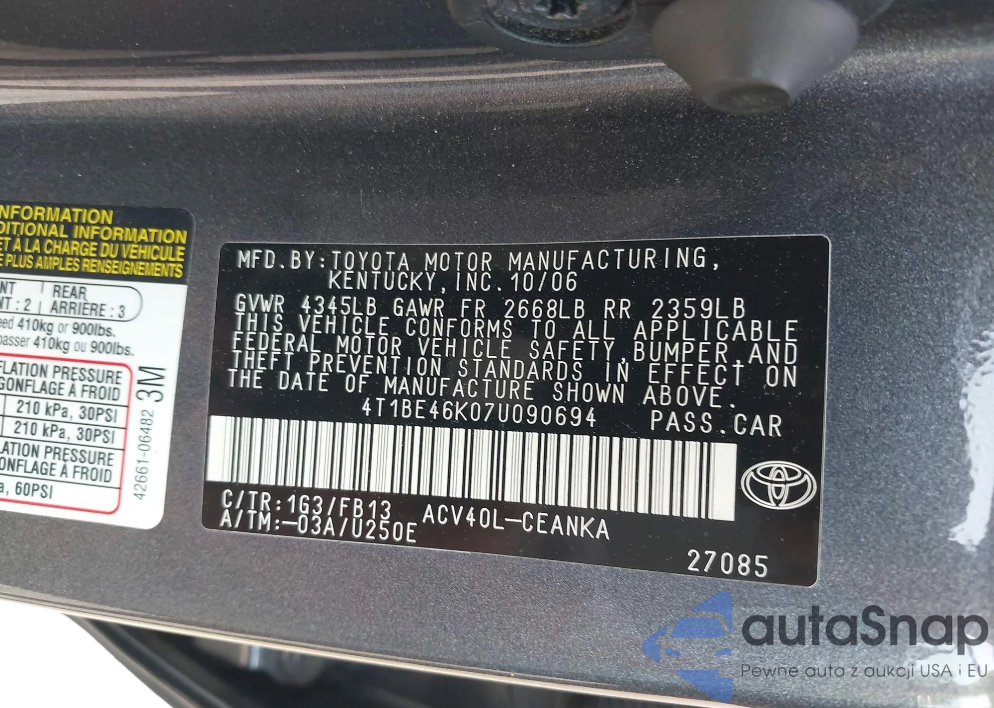 VIN: 4T1BE46K07U090694