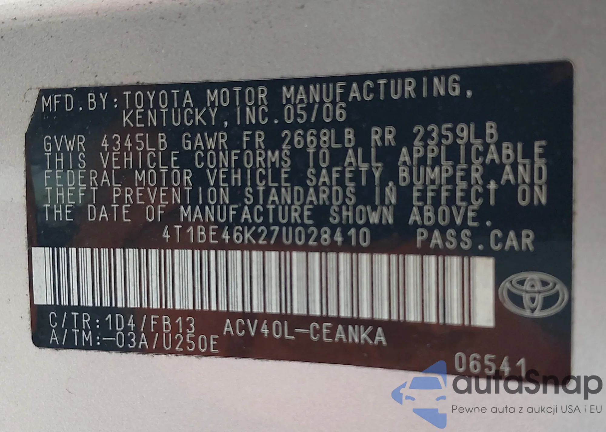 VIN: 4T1BE46K27U028410