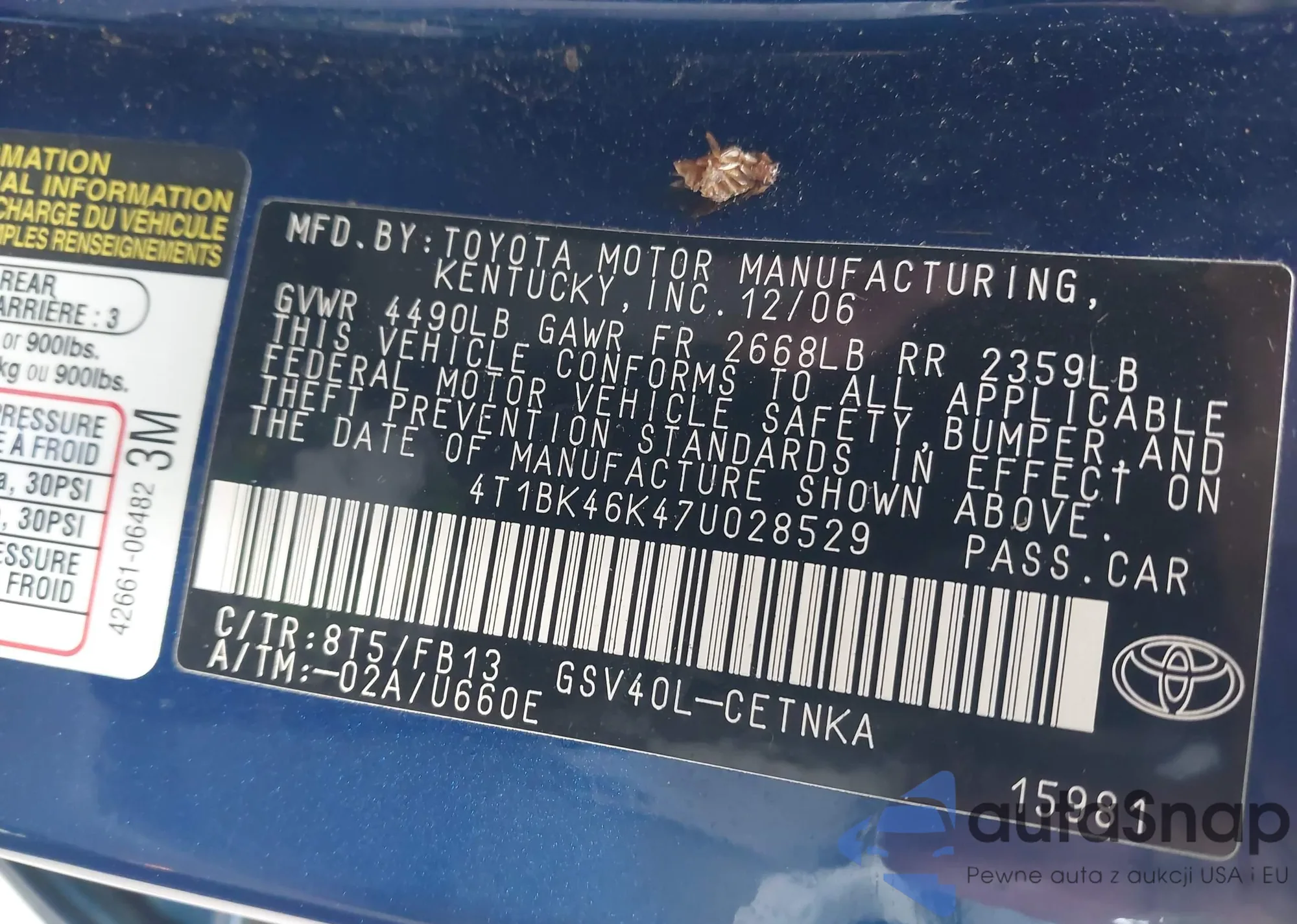 VIN: 4T1BK46K47U028529