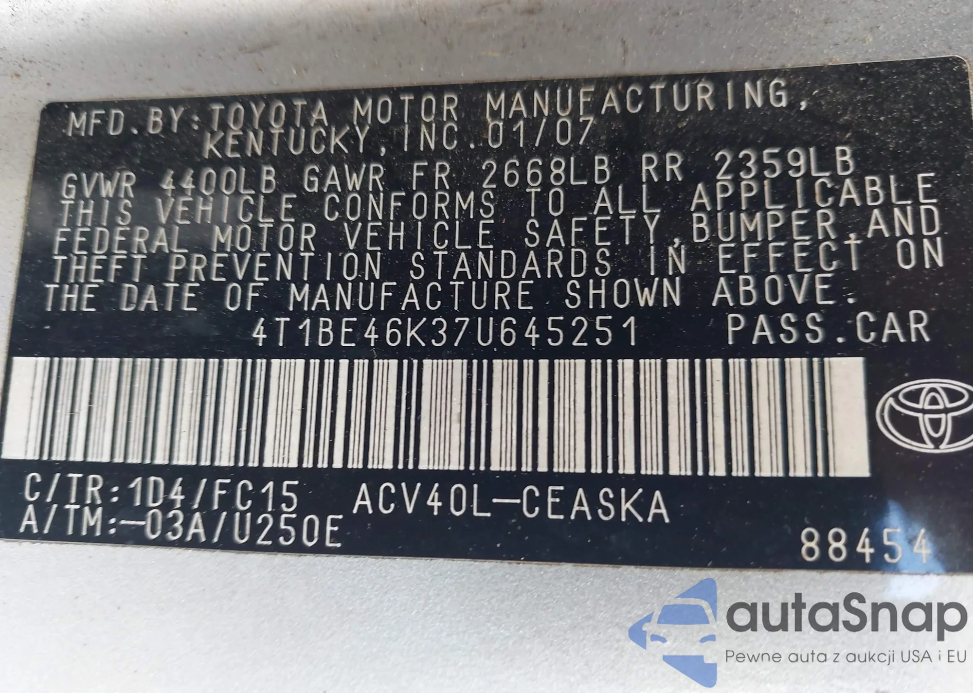 VIN: 4T1BE46K37U645251