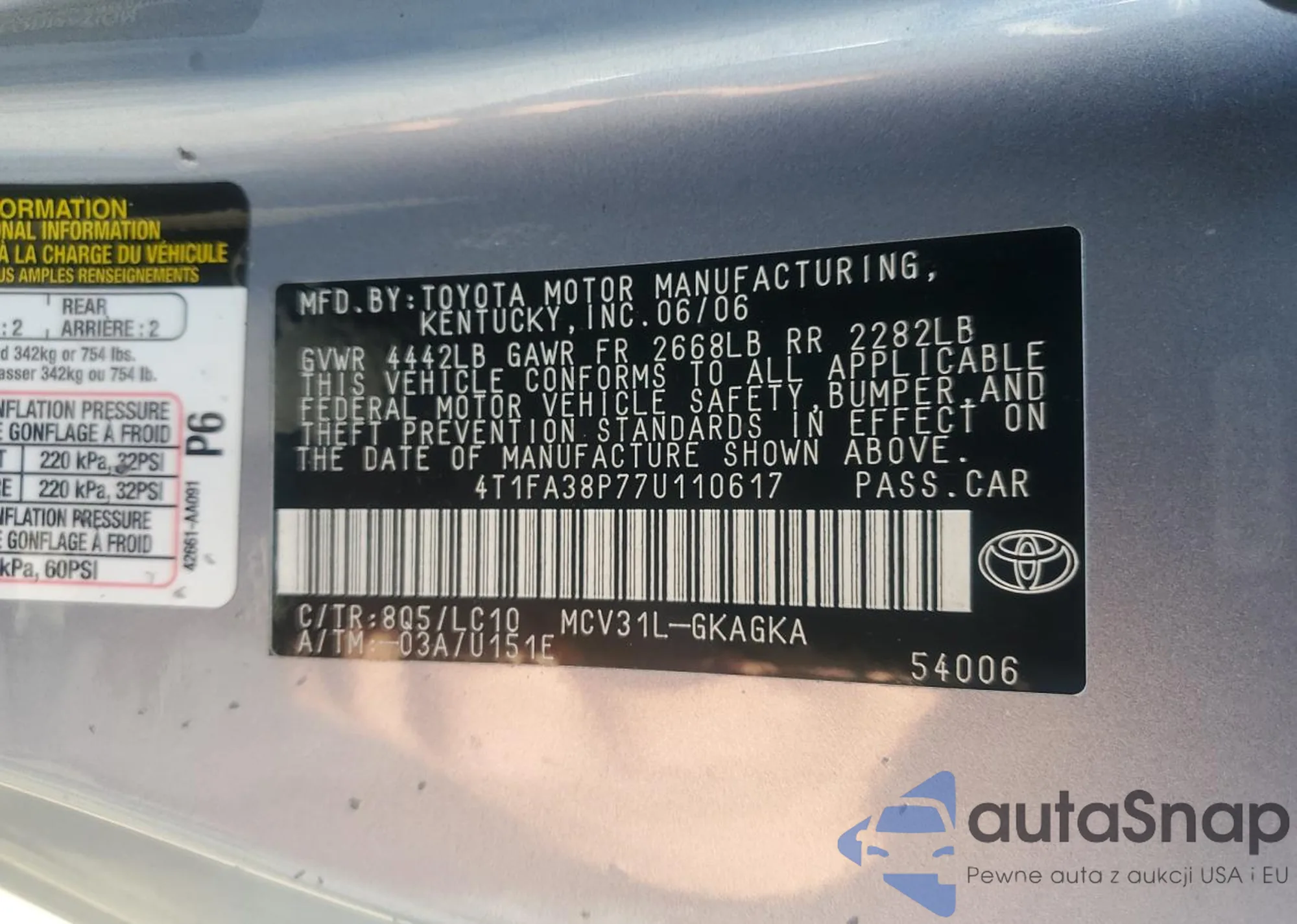 VIN: 4T1FA38P77U110617