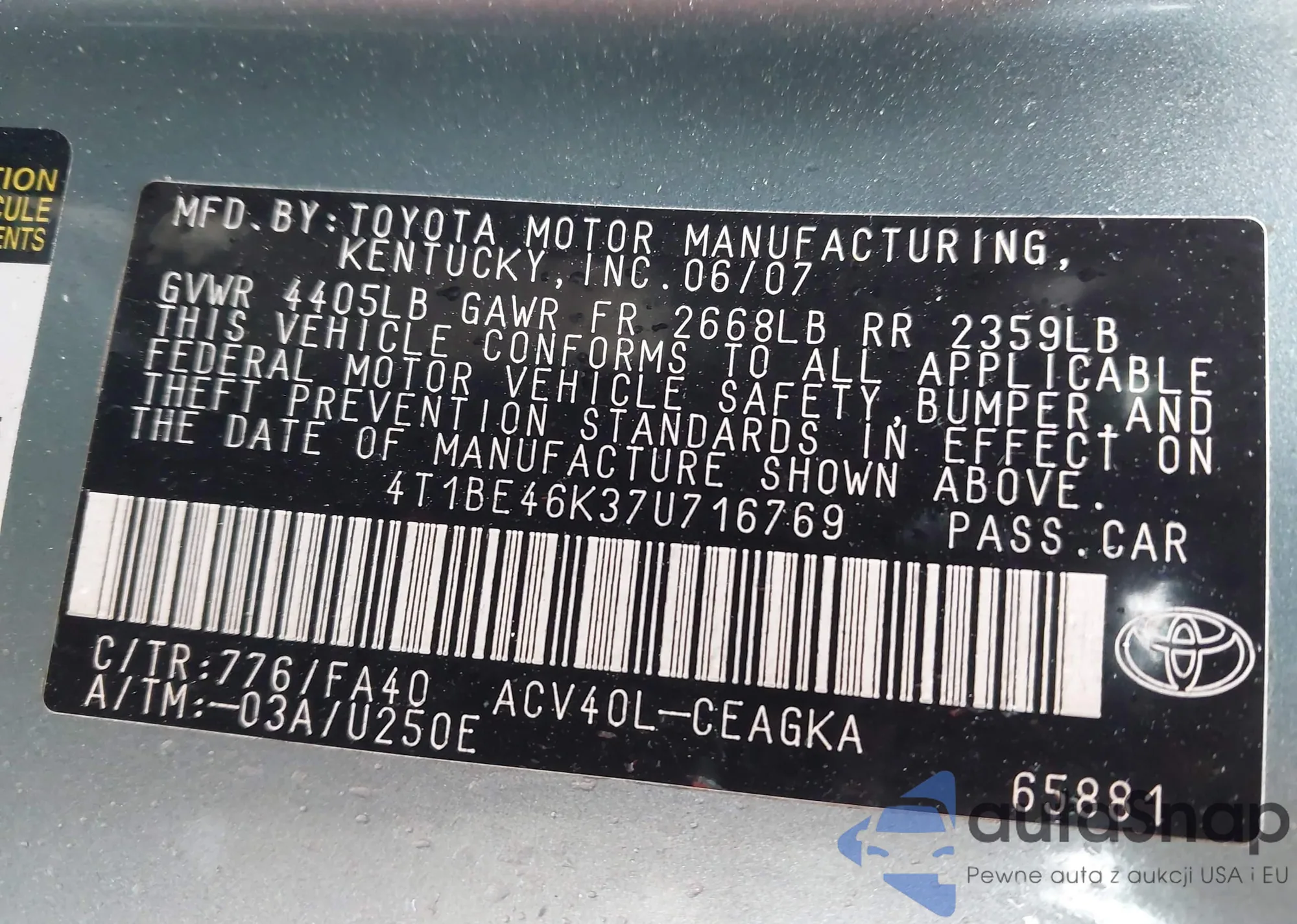 VIN: 4T1BE46K37U716769