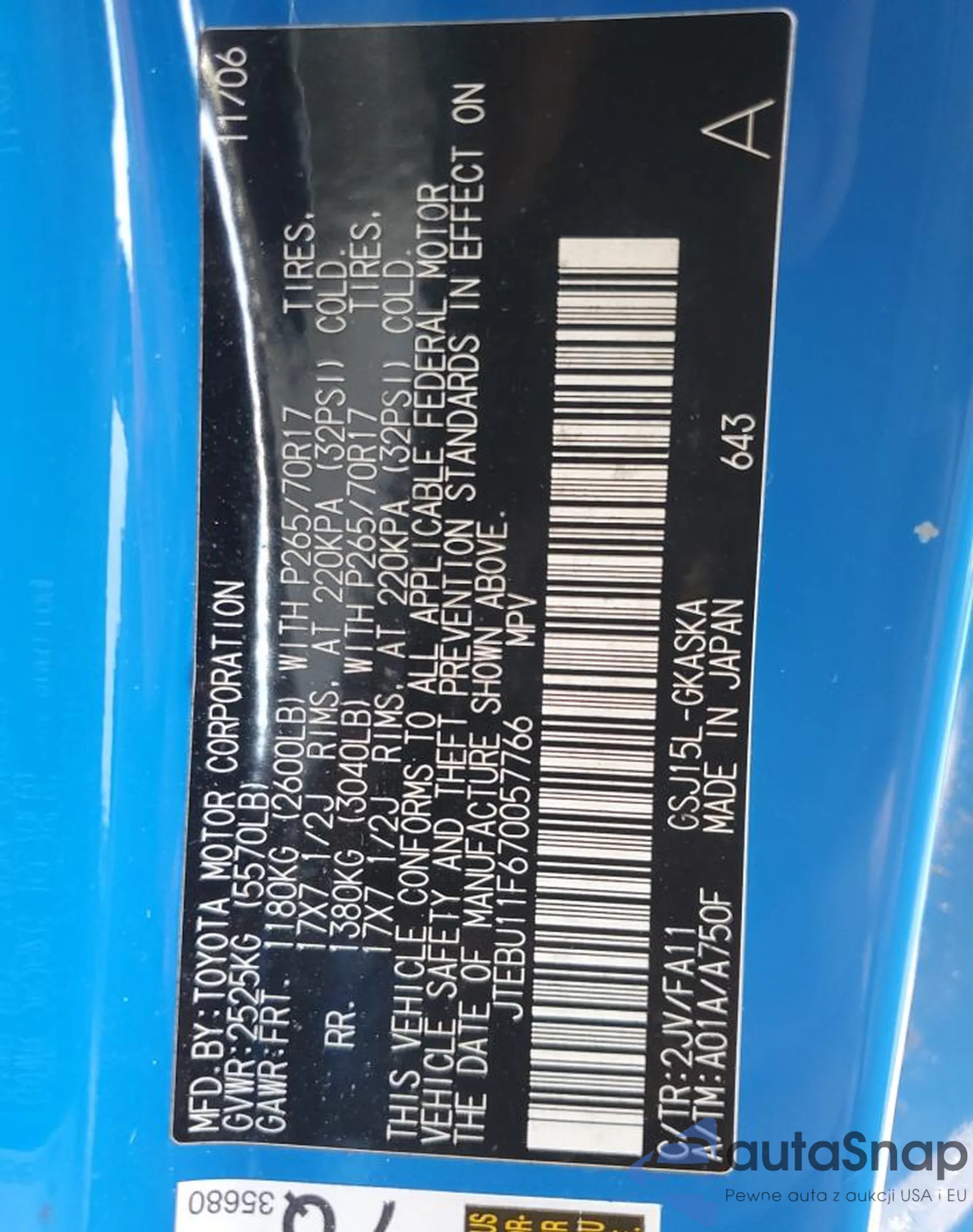 VIN: JTEBU11F670057766