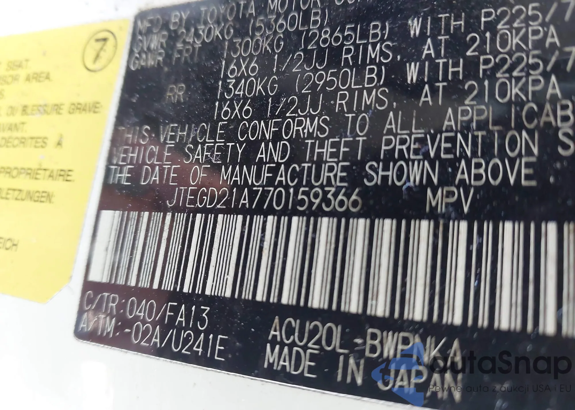 VIN: JTEGD21A770159366