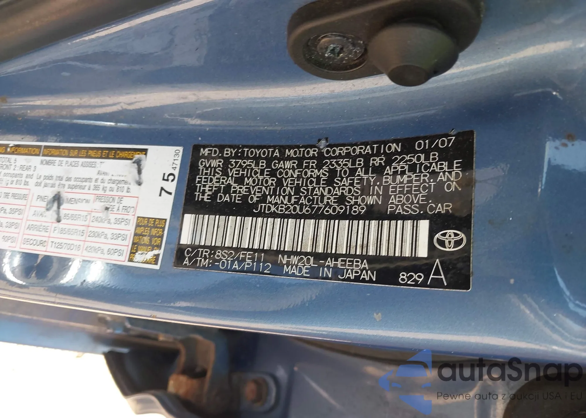 VIN: JTDKB20U677609189