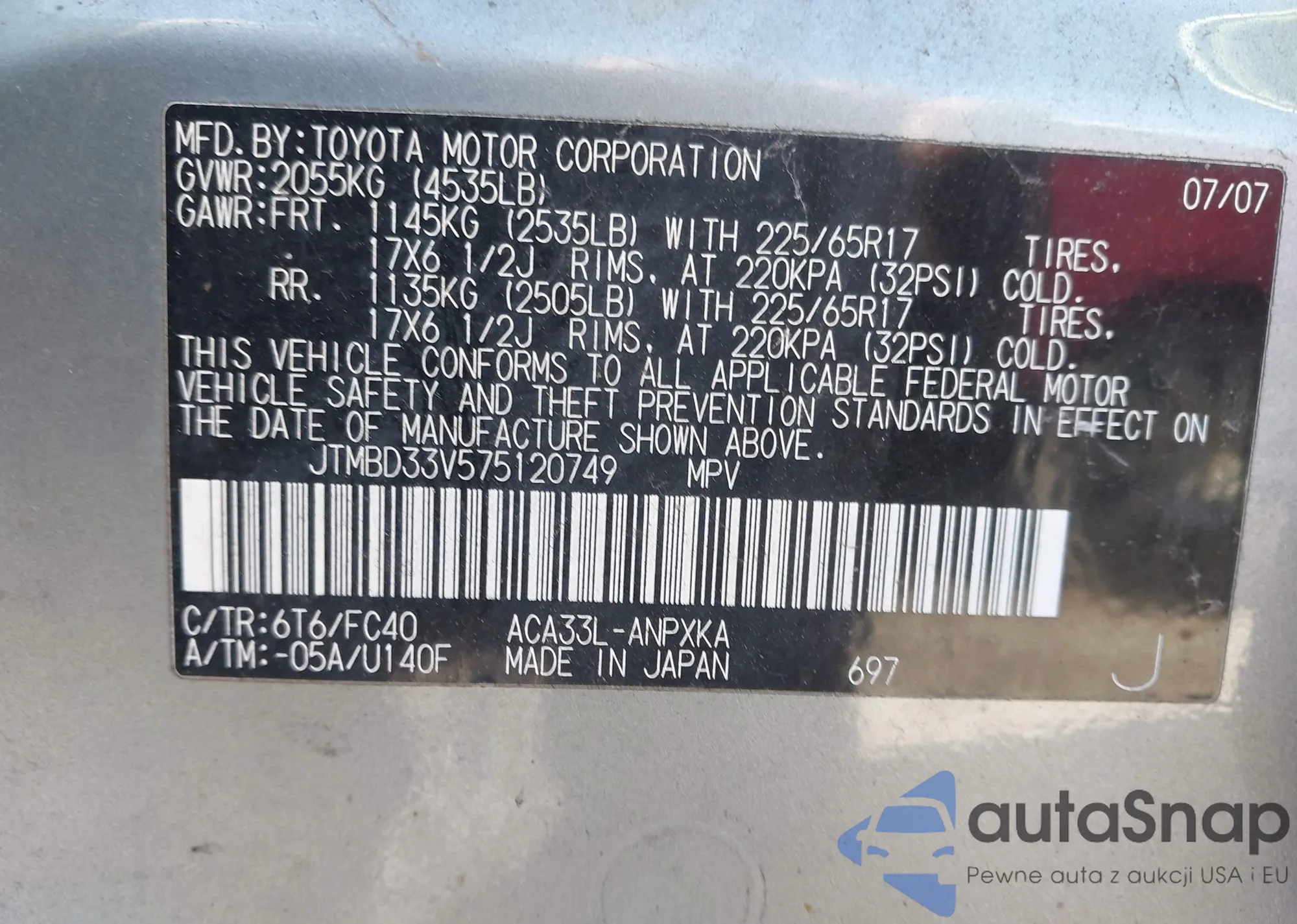 VIN: JTMBD33V575120749
