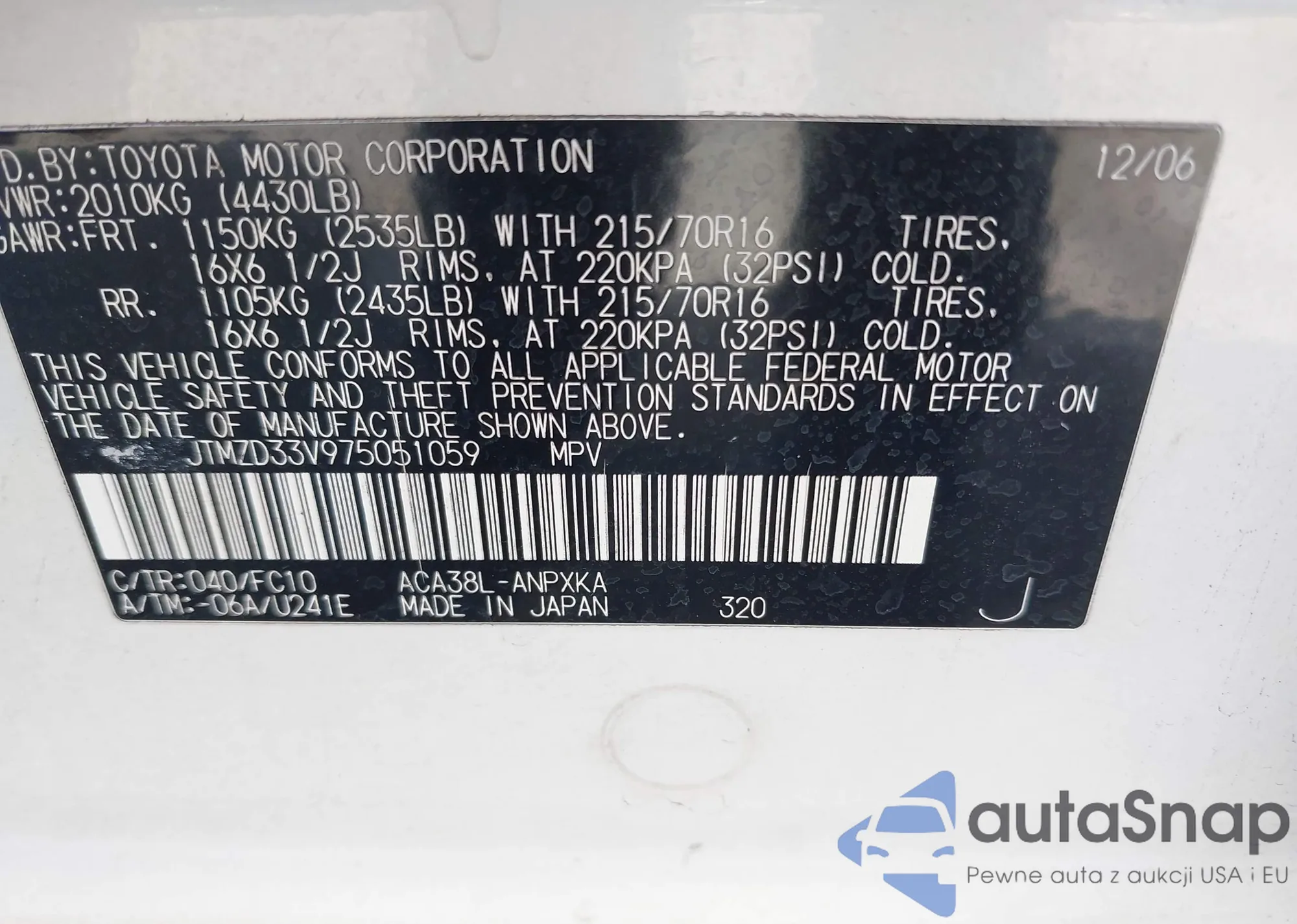 The car Toyota RAV 4 2007 (VIN JTMZD33V975051059) is sold by an unverified seller. We recommend checking the Carfax report and confirming registration possibilities before purchase.