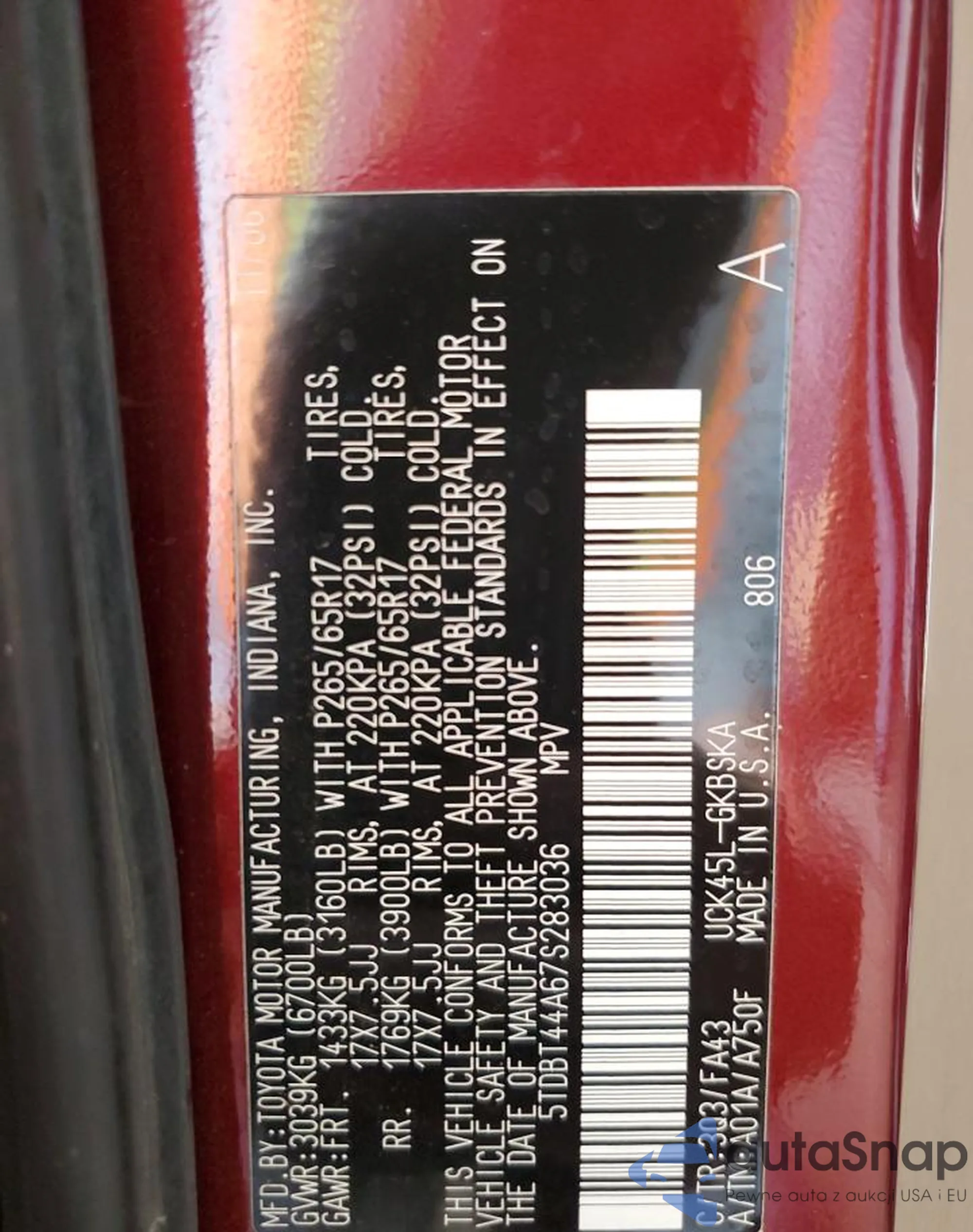 VIN: 5TDBT44A67S283036