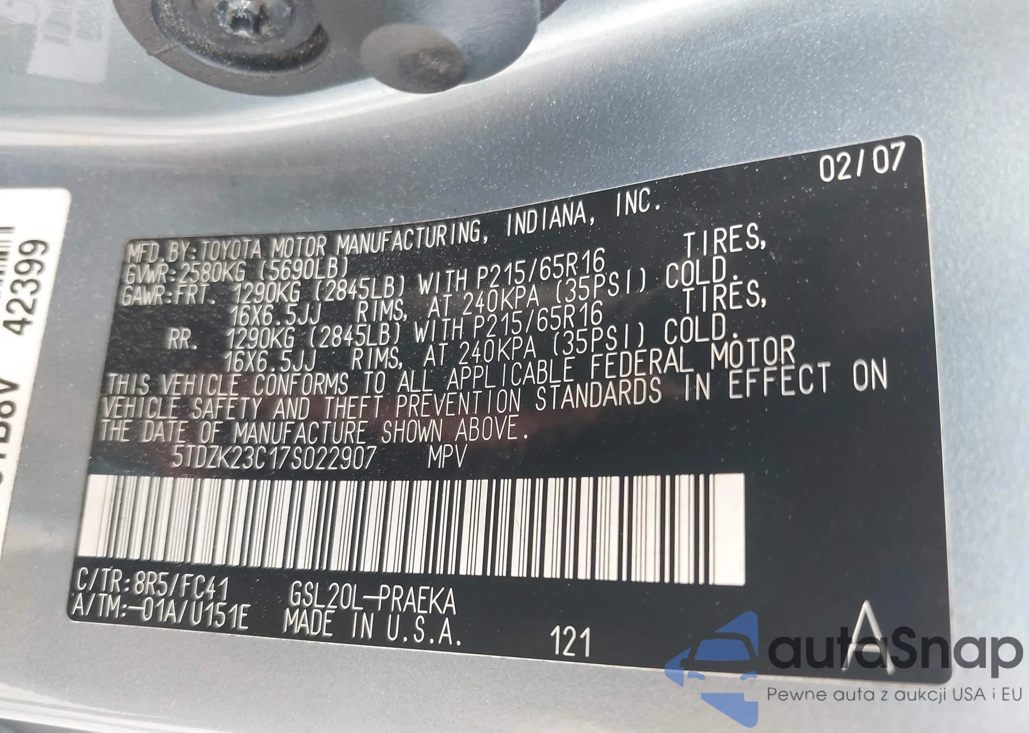VIN: 5TDZK23C17S022907