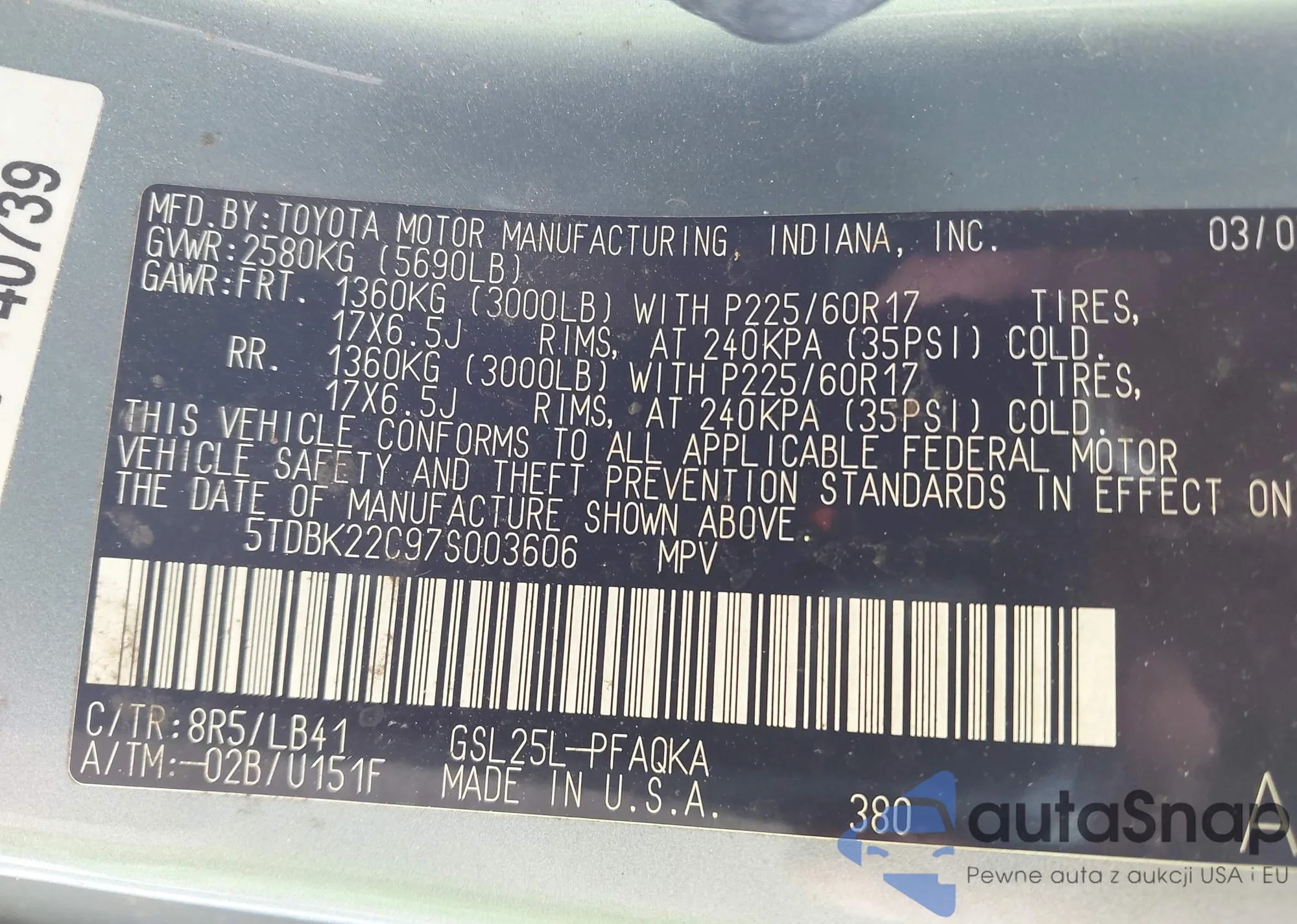 VIN: 5TDBK22C97S003606